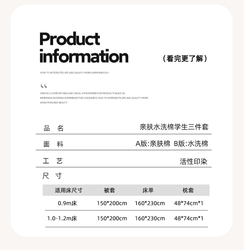• 1.2m 침대 모자 세 이불 커버 150x200