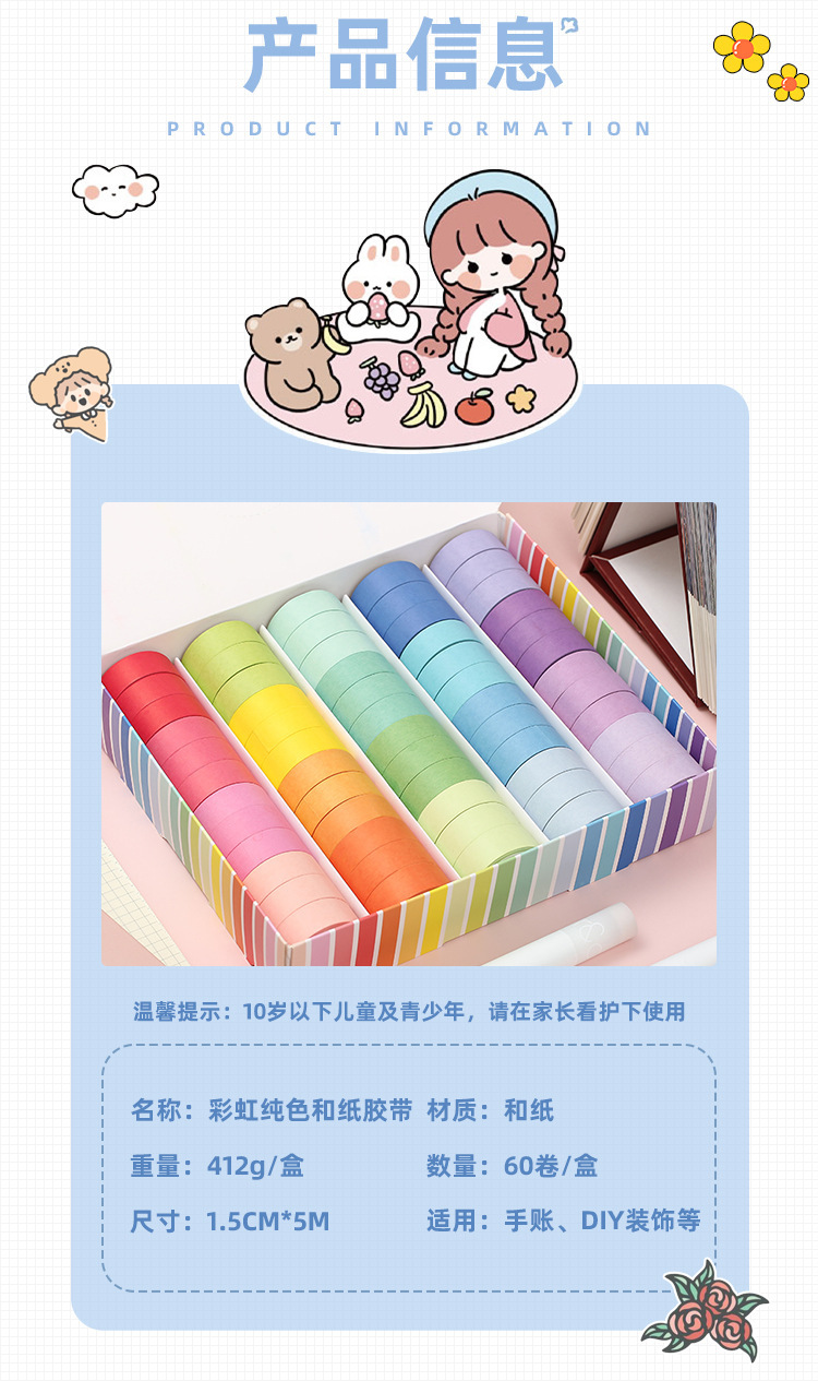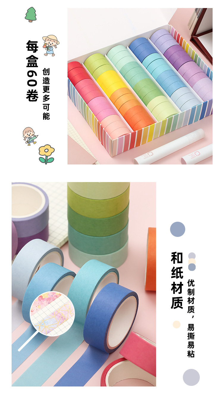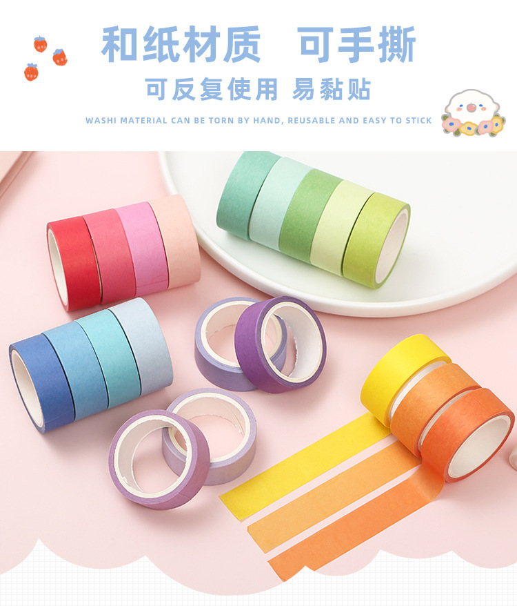 국경 베스트셀러 무지개 색 단색 및 종이 테이프 DIY 손 계정 장식 테이프 스티커 20 색 옵션 5m