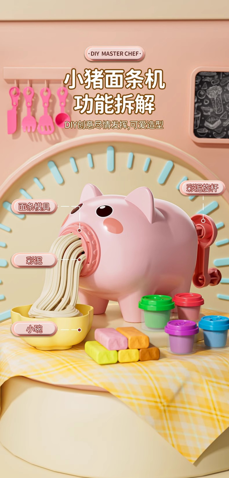 • 돼지 국수 기계 + 주방용품 세트 + 만두 기계 + 36색 점토 [국수 틀 4개 무료]