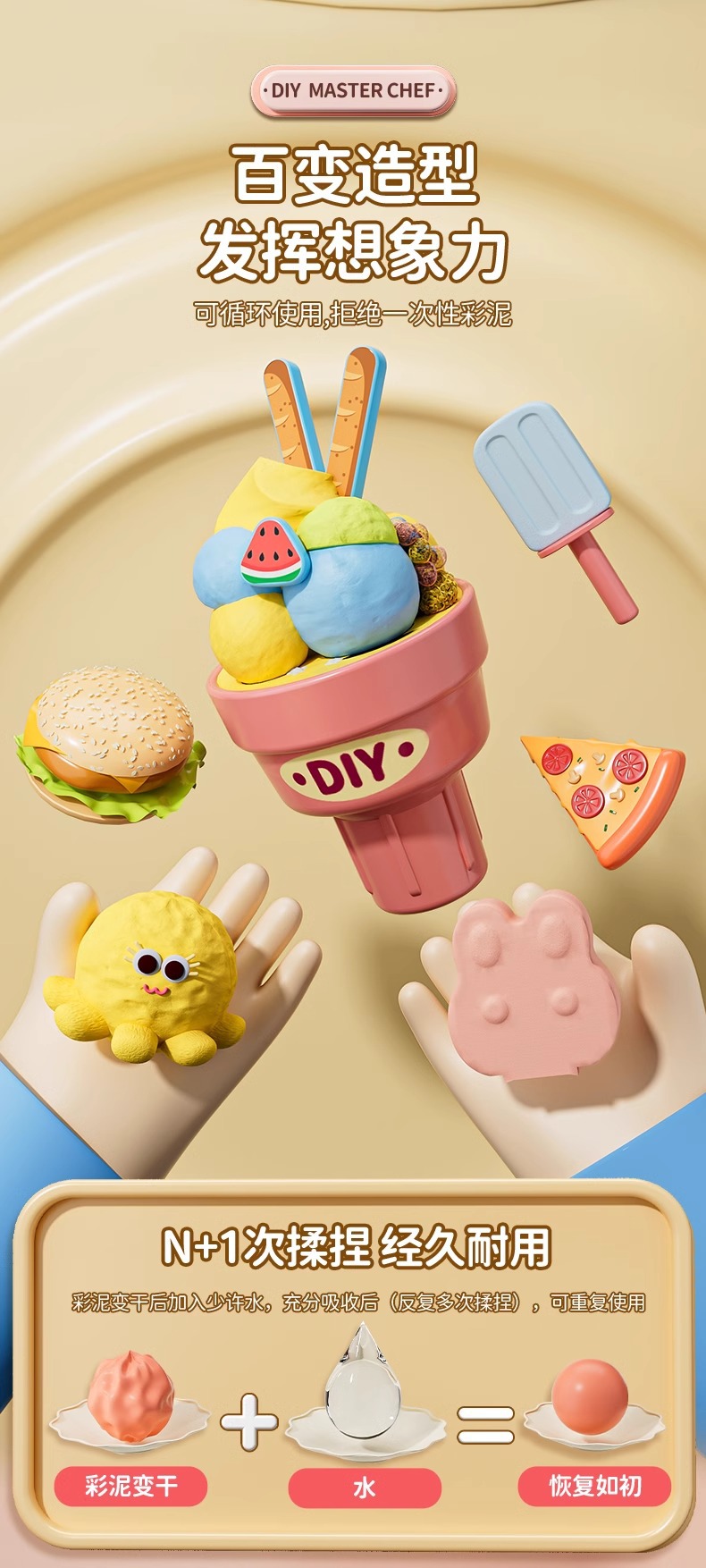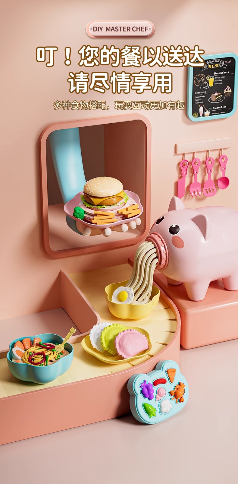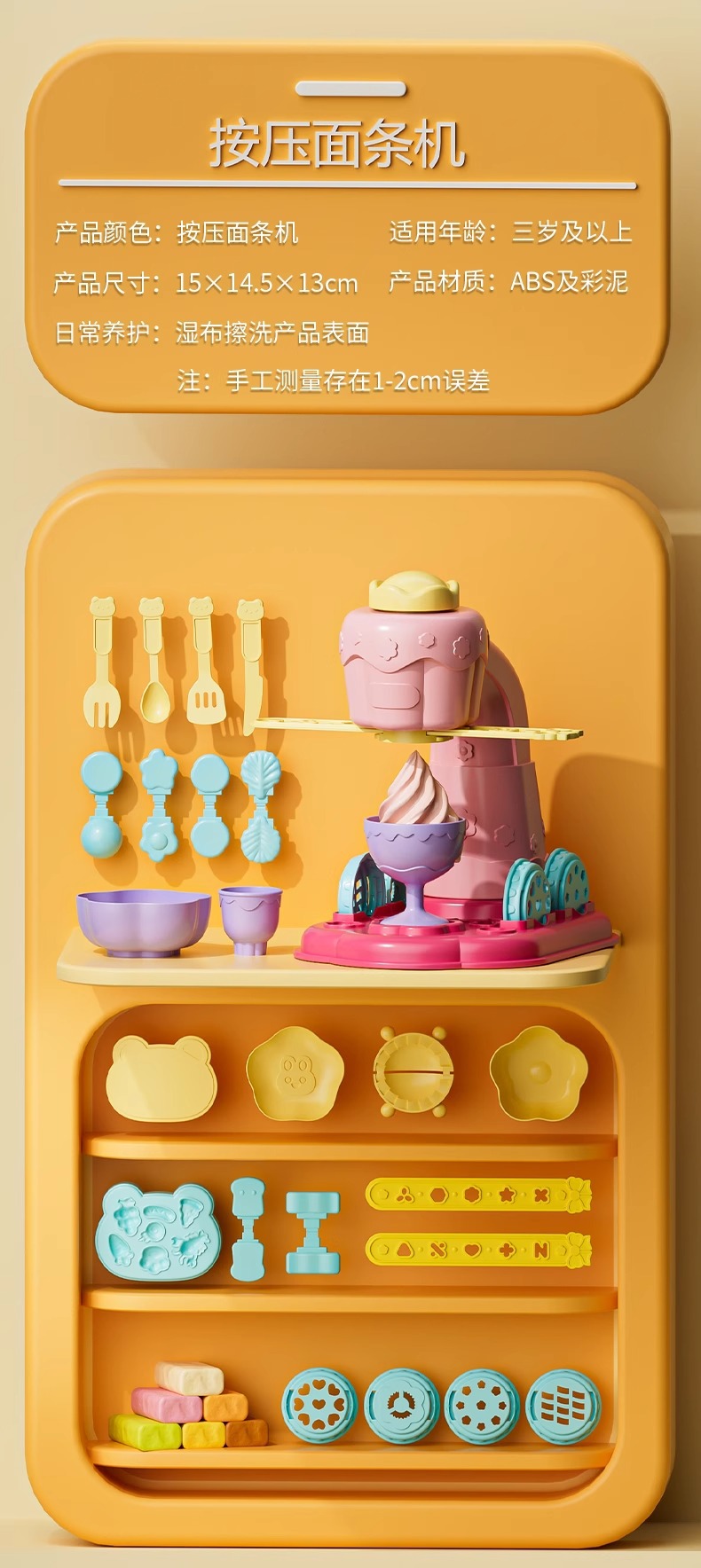 • 핑크 프레스 아이스크림 국수 기계 + 주방용품 세트 + 만두 기계 + 6색 점토