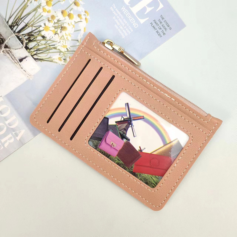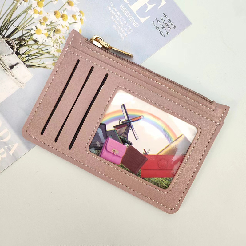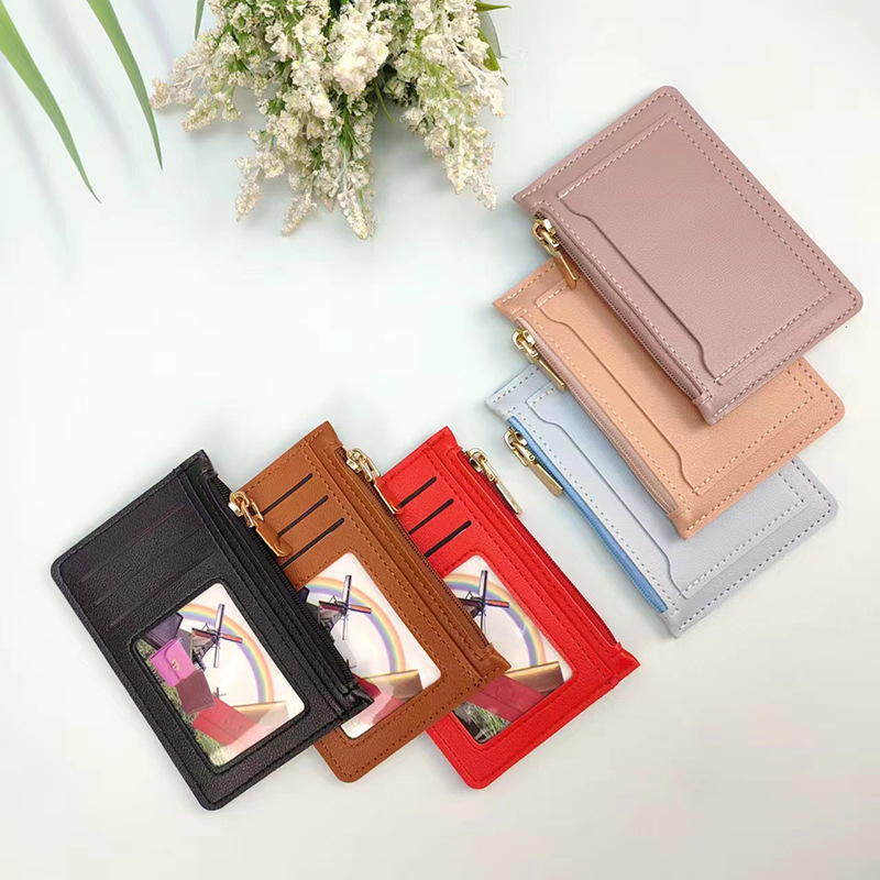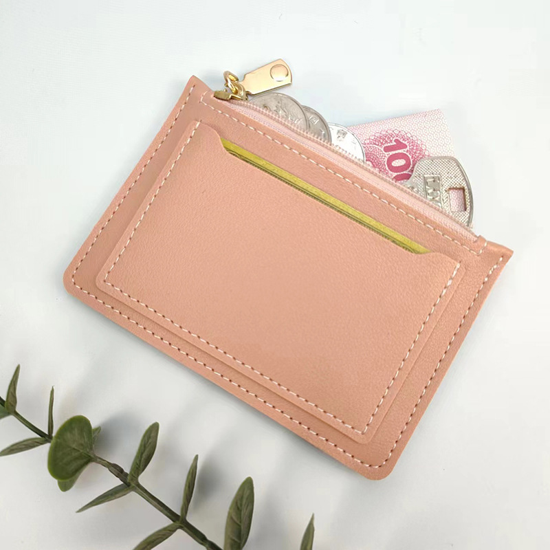 국경 간 재고 울트라 얇은 여성 변화 카드 가방 대용량 지퍼 솔리드 컬러 휴대용 소형 여성 카드 가방스토어 가기