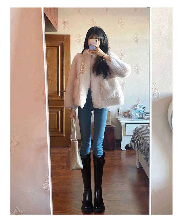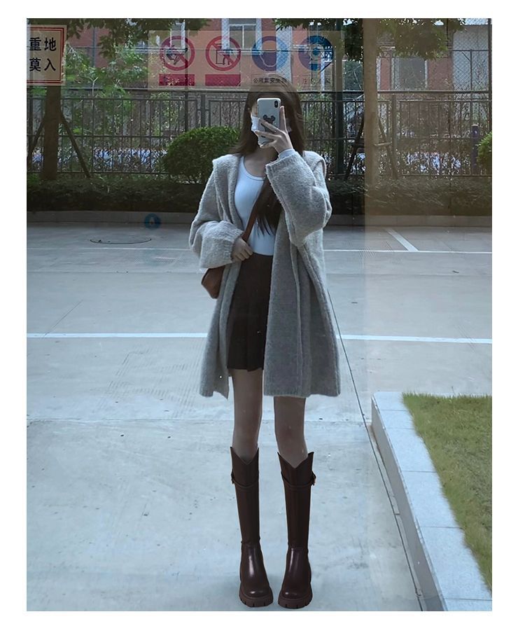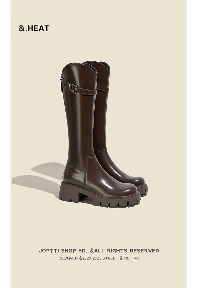 프랑스 V-입 두꺼운 힐이지만 무릎 긴 부츠 2023 올 매치 가을 및 겨울 새로운 영국 두꺼운 밑창 슬림 나이트 부츠스토어 가기