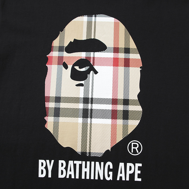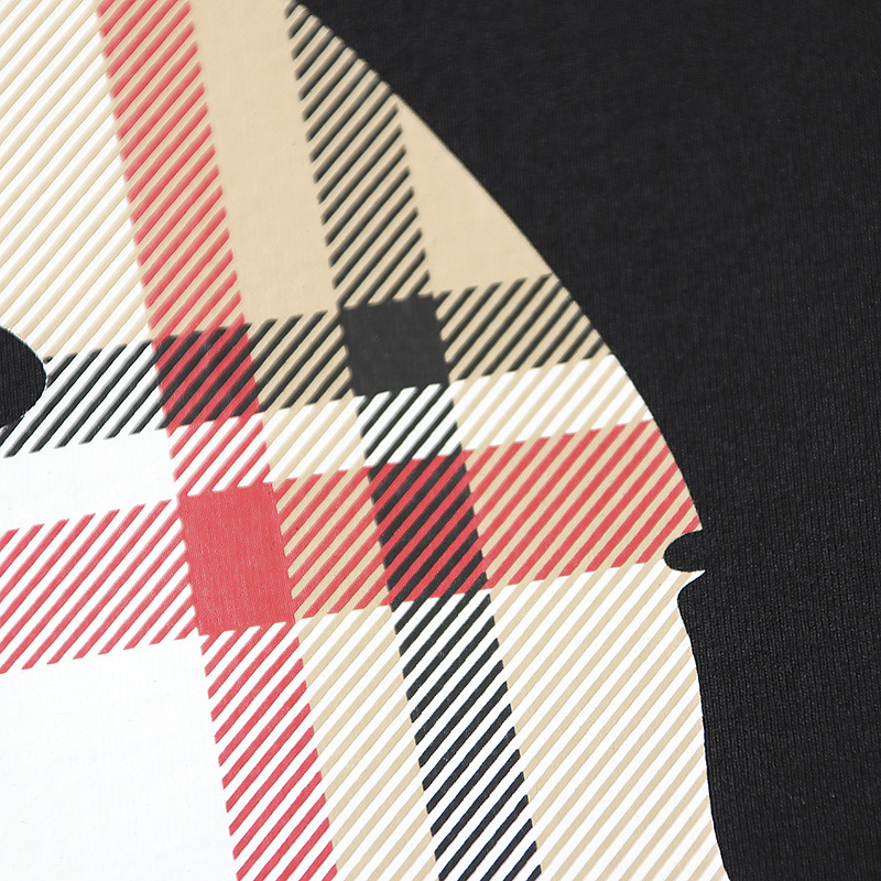 국경 간 대외 무역 도매 격자 무늬 인쇄 반팔 남성 순수 코튼 라운드 넥 편지 티셔츠 느슨한 대형 커플 스타일 반팔스토어 가기