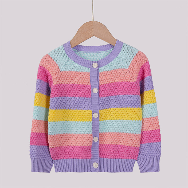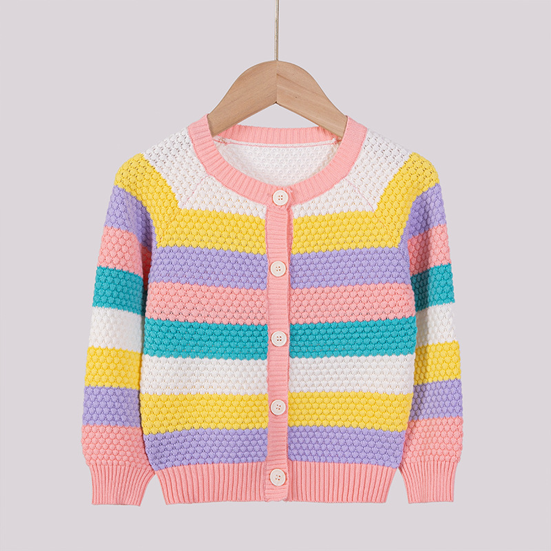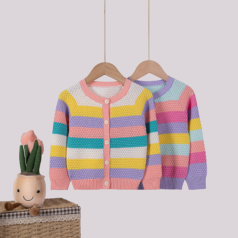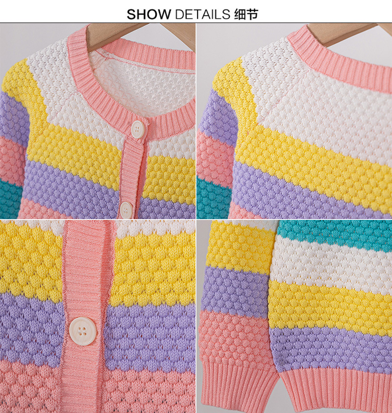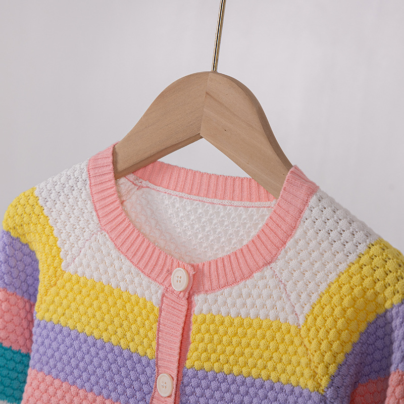 2025 새로운 스타일 라운드 넥 서양식 무지개 줄무늬 중소 어린이 니트 카디건 코트 소녀 스웨터 드롭 배송