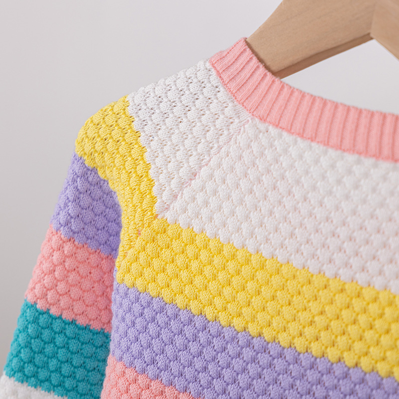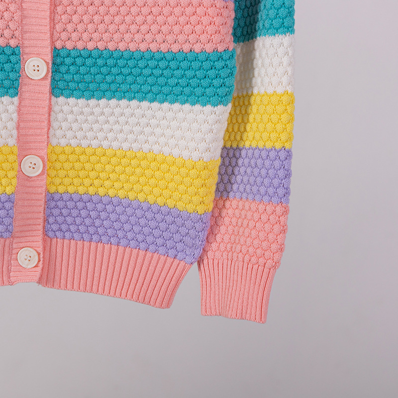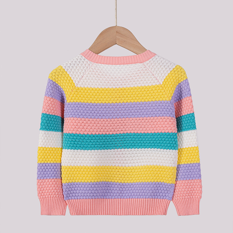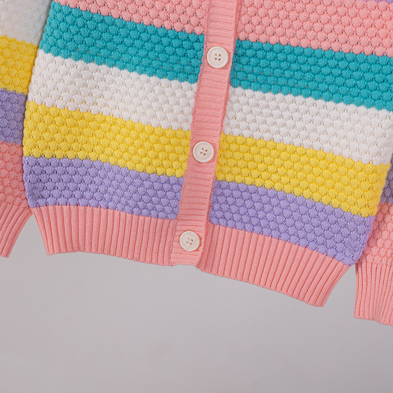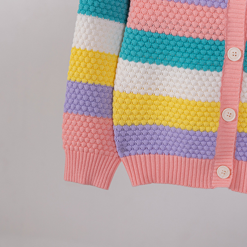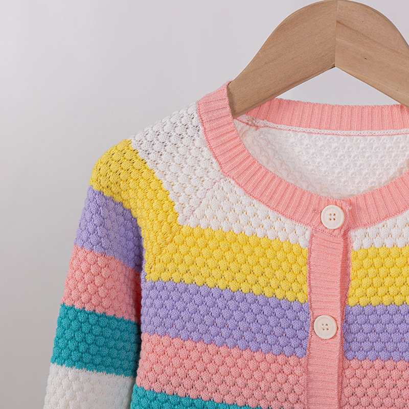 2025 새로운 스타일 라운드 넥 서양식 무지개 줄무늬 중소 어린이 니트 카디건 코트 소녀 스웨터 드롭 배송