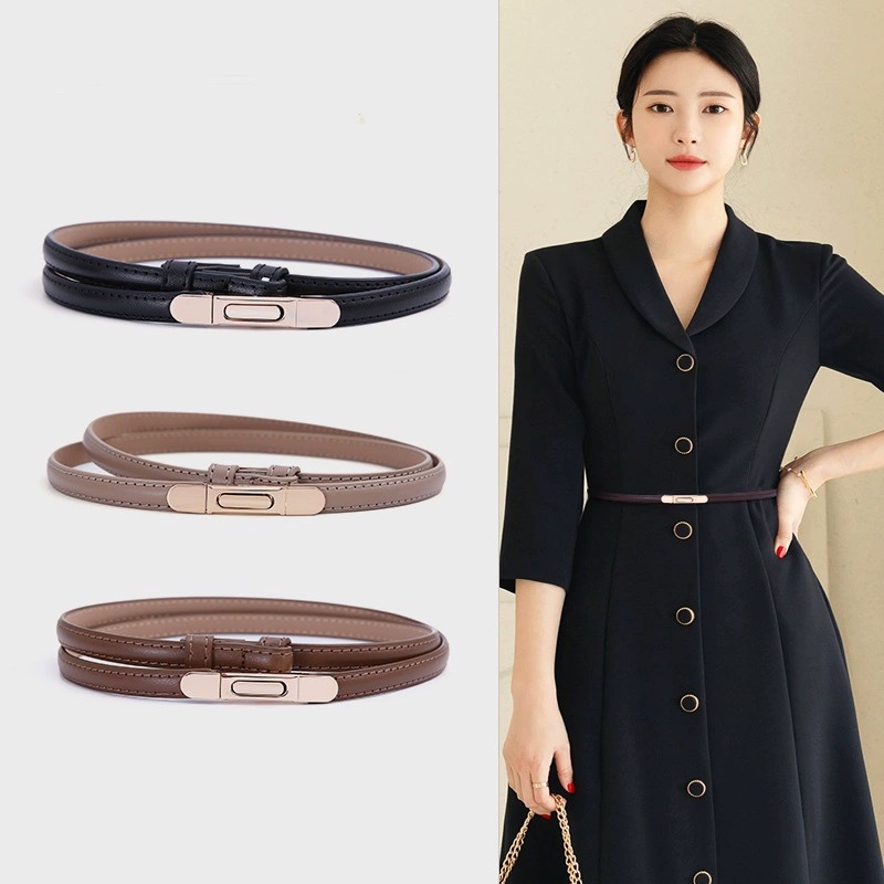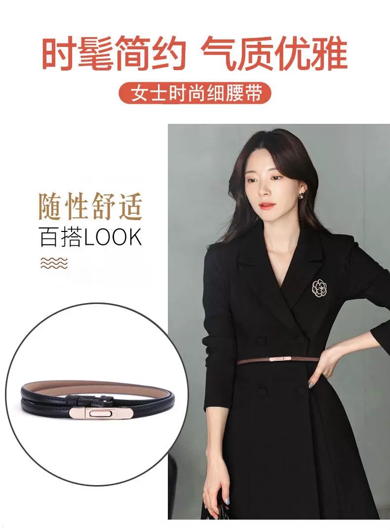 모든 경기 여성의 얇은 벨트 액세서리 2024 새로운 가죽 허리 씰 디자인 틈새 허리 벨트 간단한 허리 체인스토어 가기