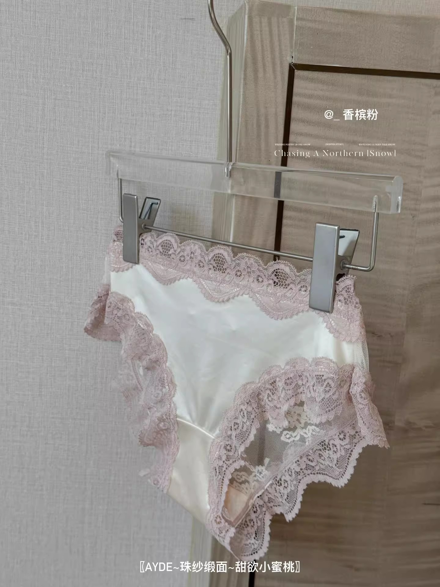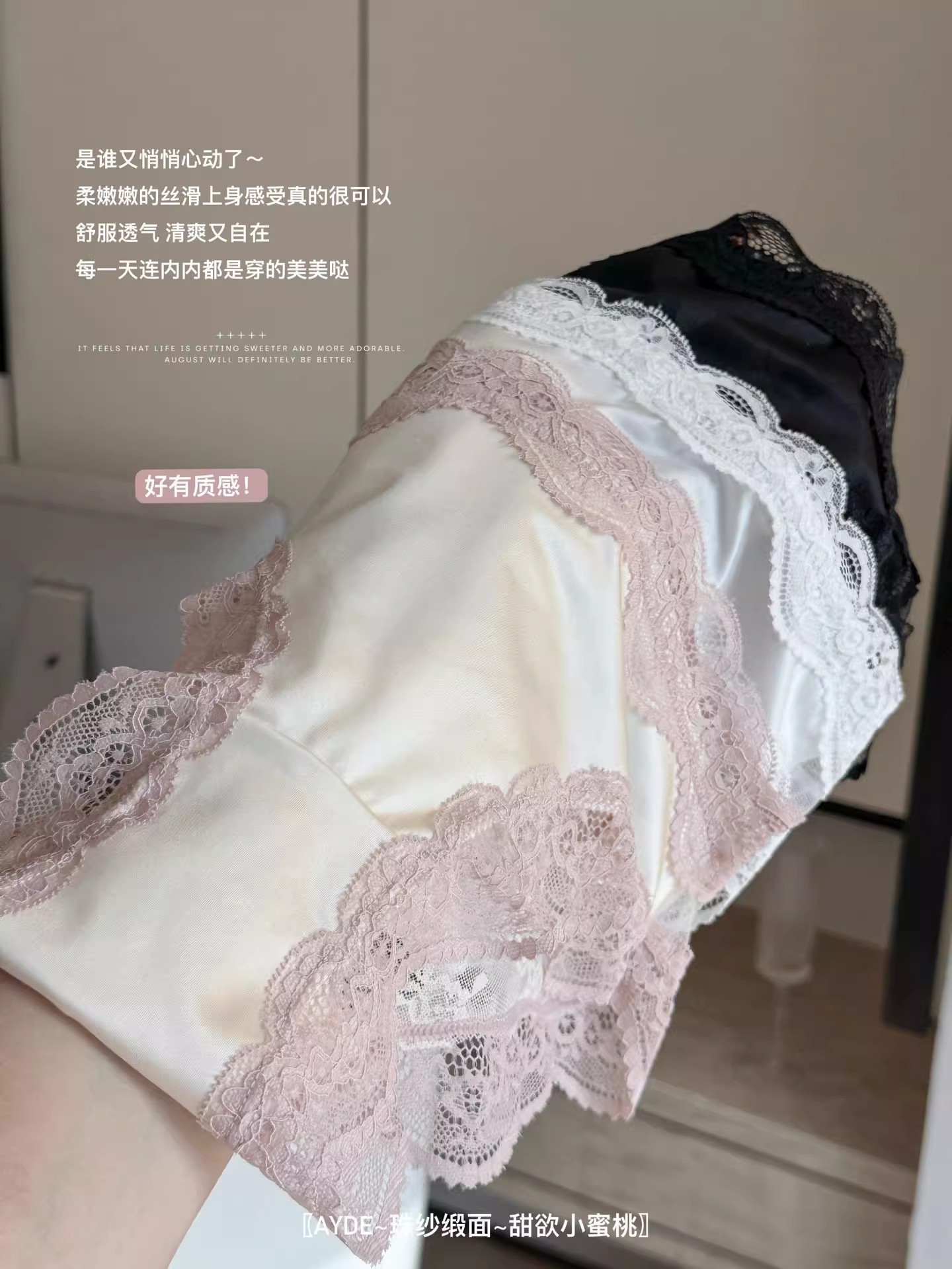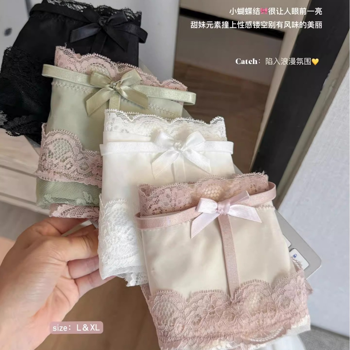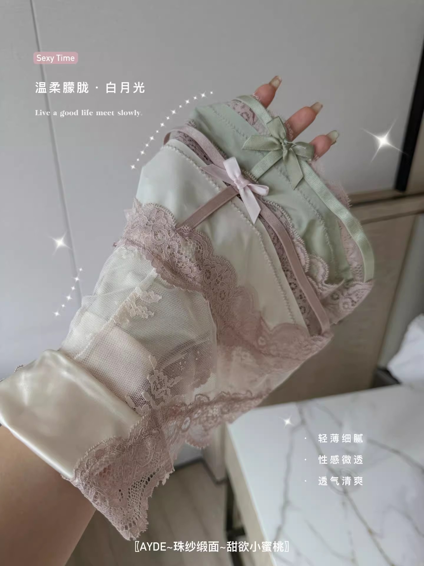 첫눈에 사랑 ~ 순수한 섹시한 새틴 레이스 소녀 브리프 빈 얇은 통기성 코튼 가랑이 속옷 여성