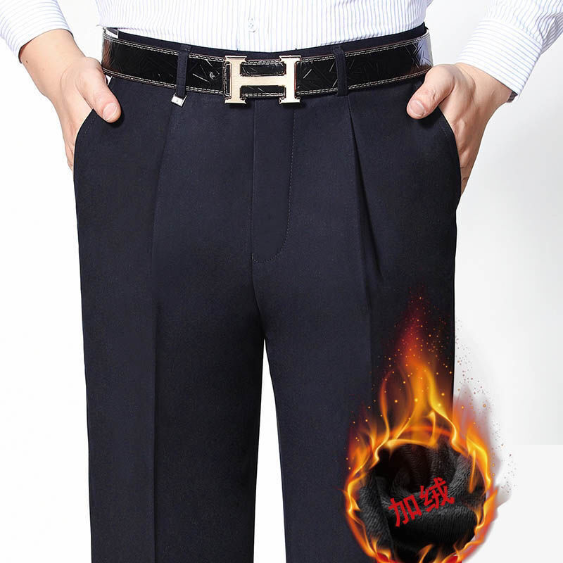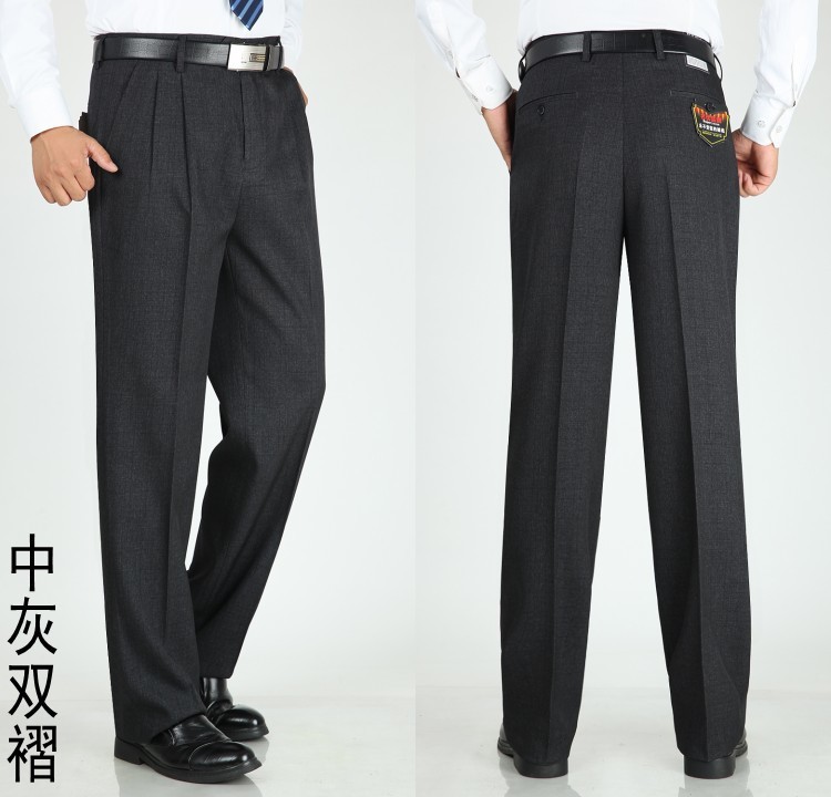 중년 남성 봄과 여름 새로운 깊은 가랑이 비즈니스 바지 올 매치 느슨한 스트레이트 비 다림질 하이 허리 세트 바지스토어 가기