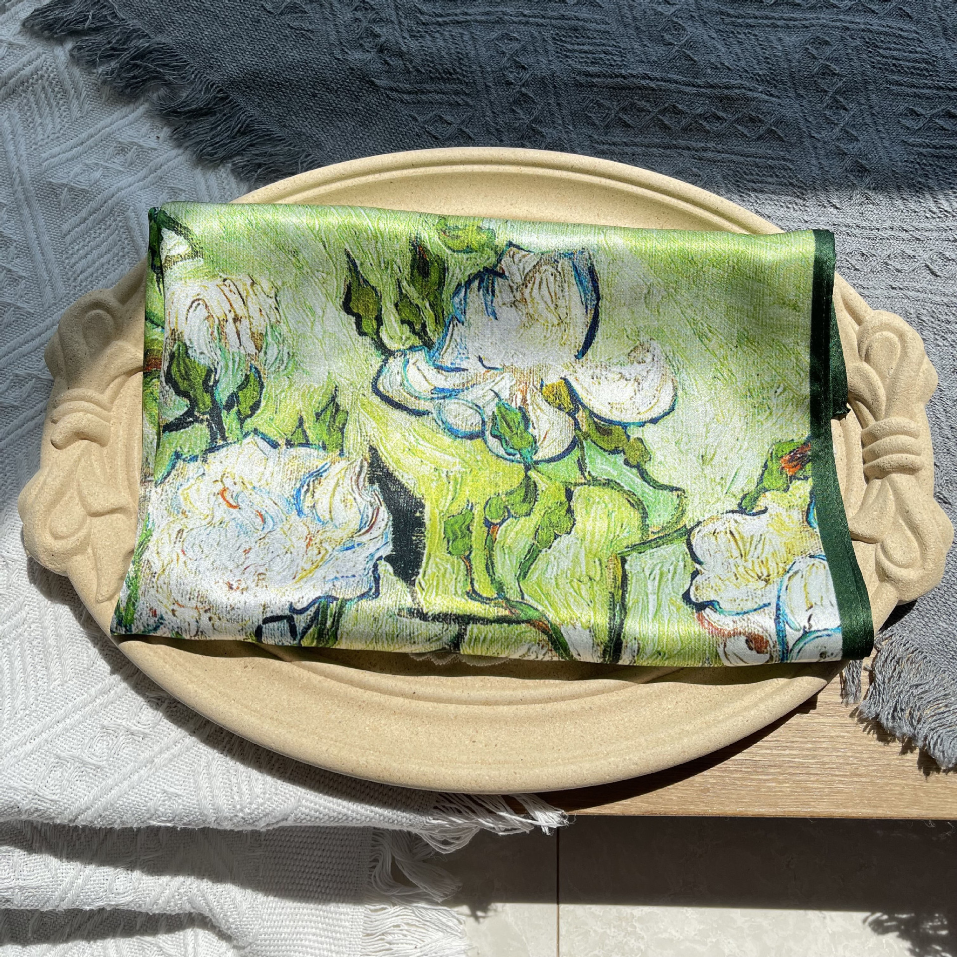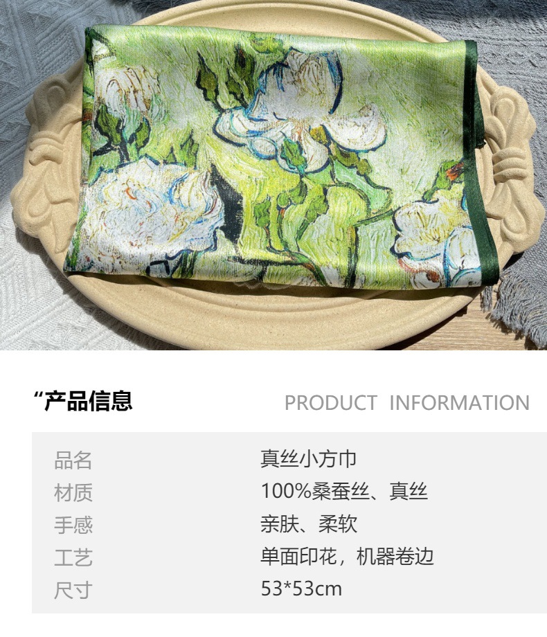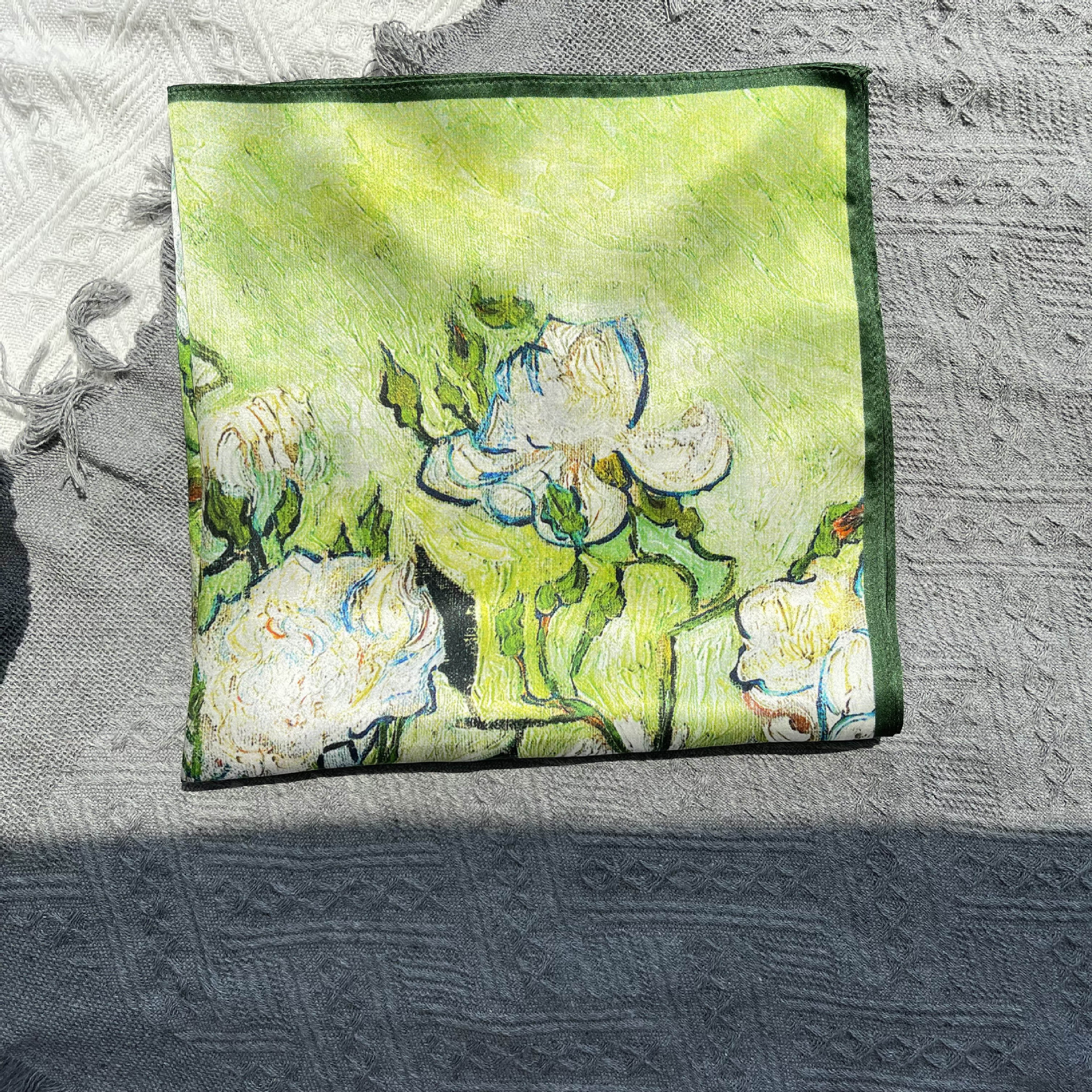 24 새로운 유화 화이트 로즈 실크 스카프 여성의 여름 태양 보호 53cm 작은 광장 스카프 높은 감각 패션 스카프스토어 가기