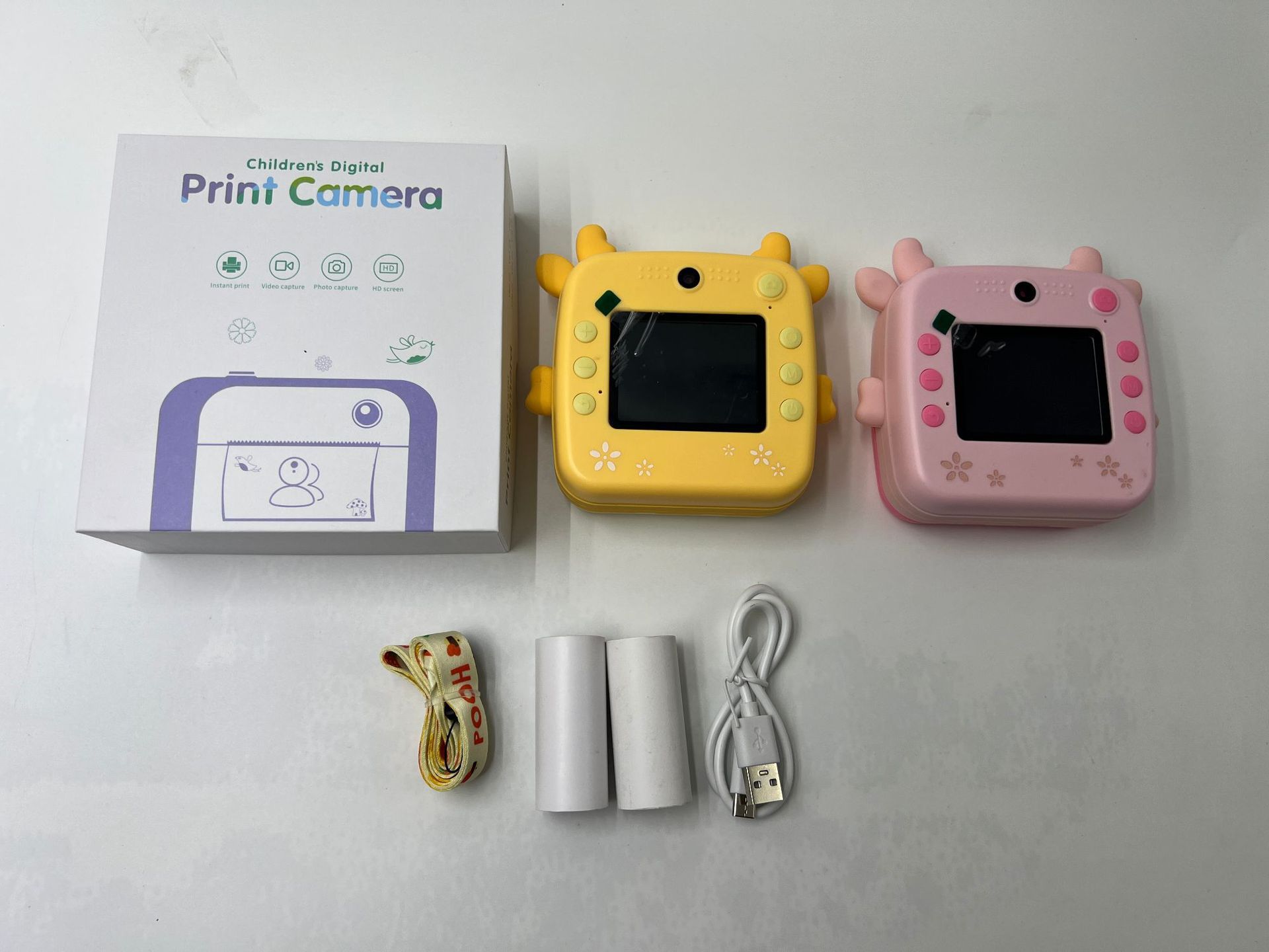 국경 새로운 어린이 폴라로이드 카메라 HD 더블 렌즈 사진 비디오 학생 인쇄 카메라 장난감