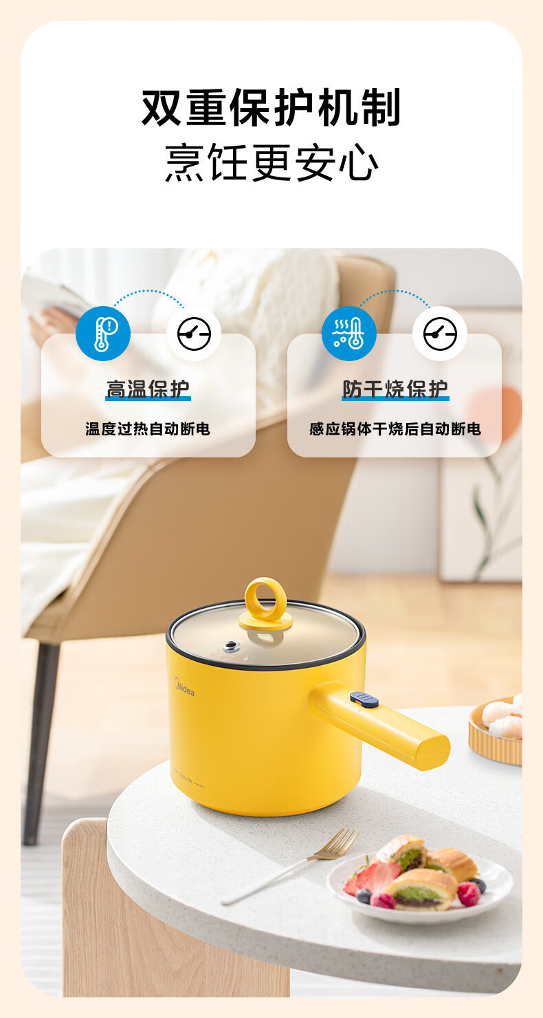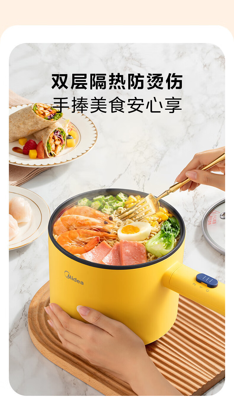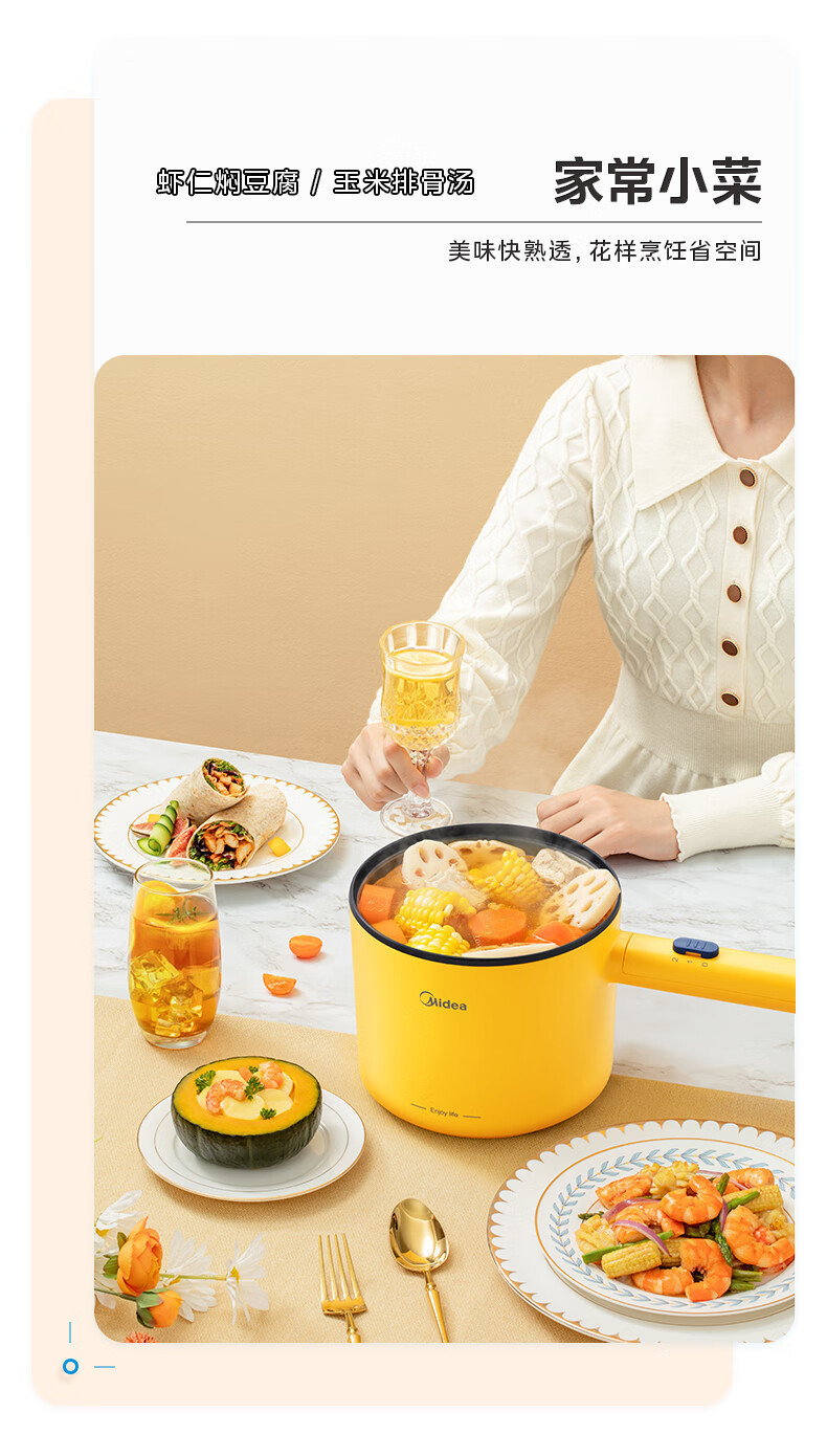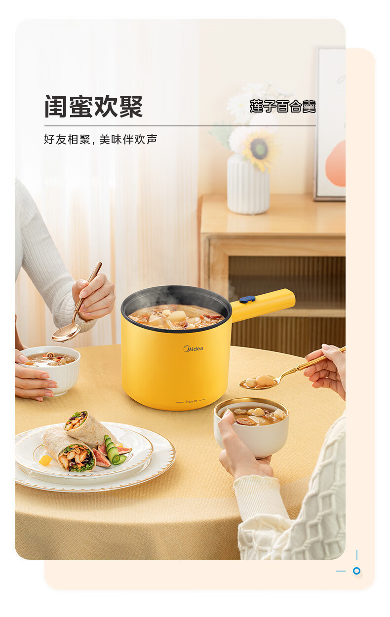 Midea 전기 밥솥 1.7L 작은 전기 밥솥 전기 밥솥 인스턴트 국수 전기 chafing 접시 다목적 전기 증기선 XZE1603-KS1