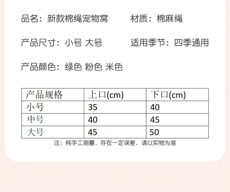 새로운 면 밧줄 애완 동물 둥지 고양이 둥지 손으로 짠 사계절 유니버설 애완 동물 침대 아마존 빨 수있는 고양이 둥지