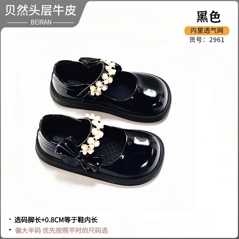 어린이 신발 소녀 밝은 가죽 특허 가죽 공주 가죽 신발 비 슬립 부드러운 바닥 여성 보물 소녀 밝은 다이아몬드 화이트 블랙