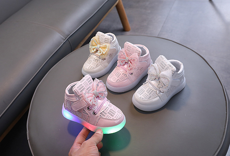 소녀 빛나는 빛 신발 2024 가을 어린이 새 활 공주 신발 아기의 캐주얼 올 매치 유아 신발스토어 가기