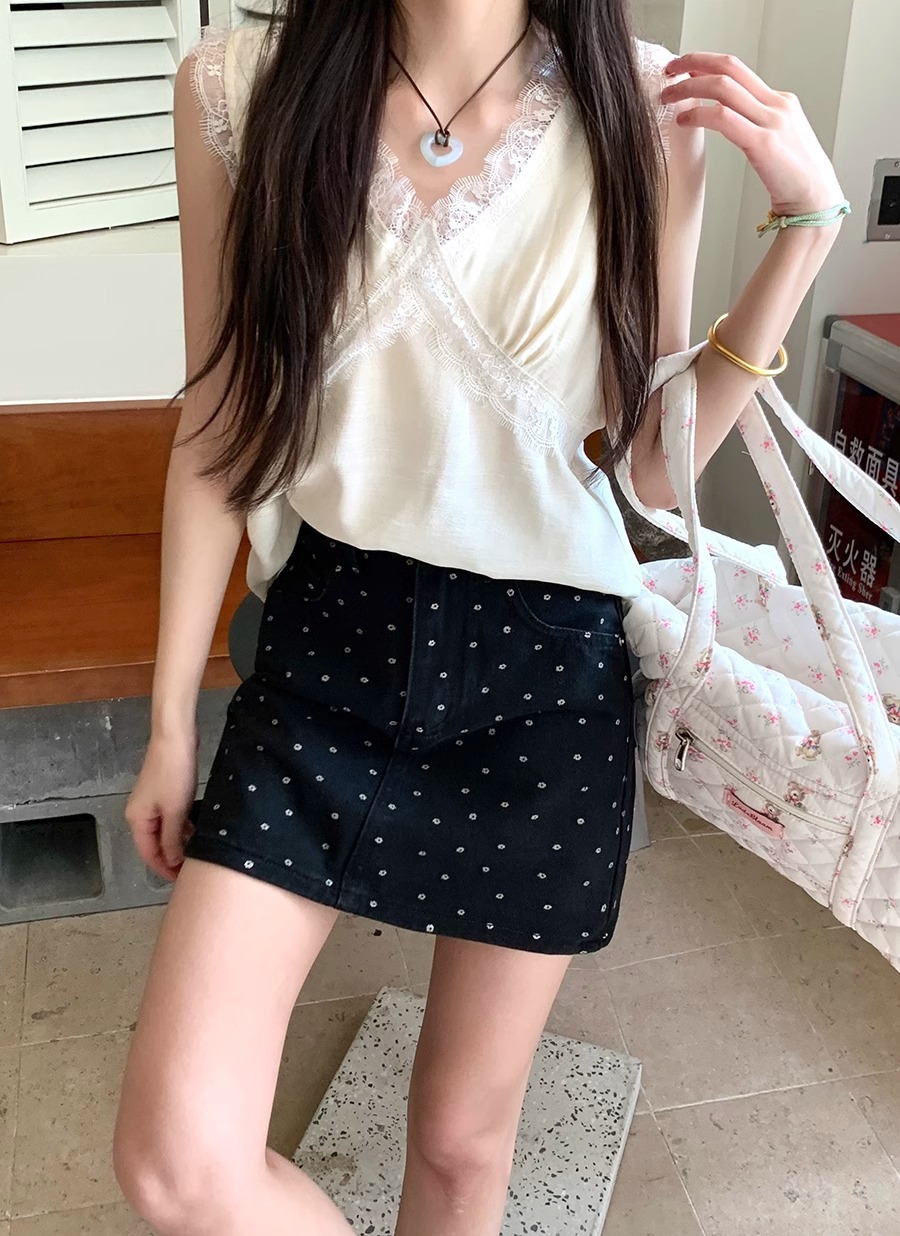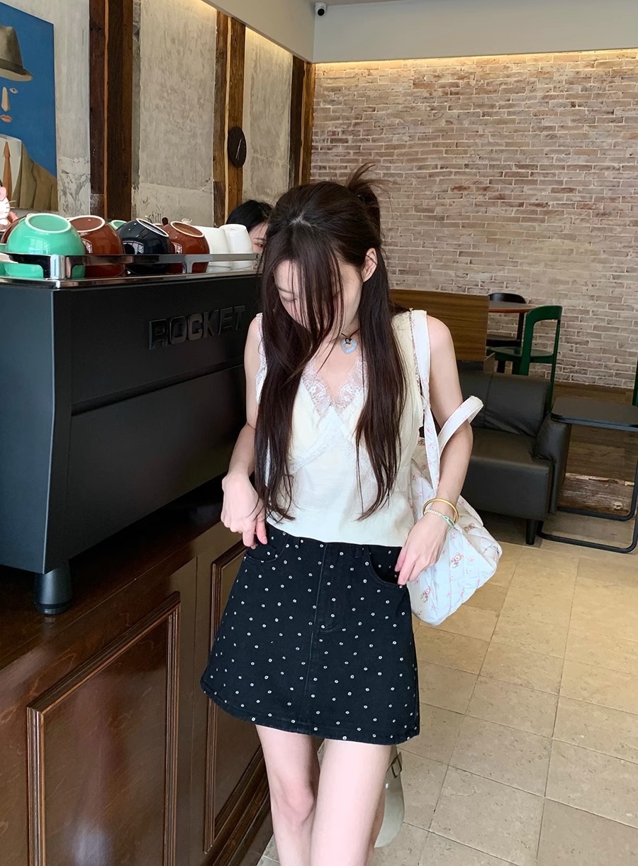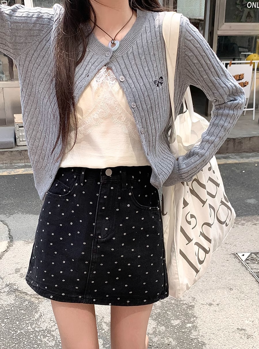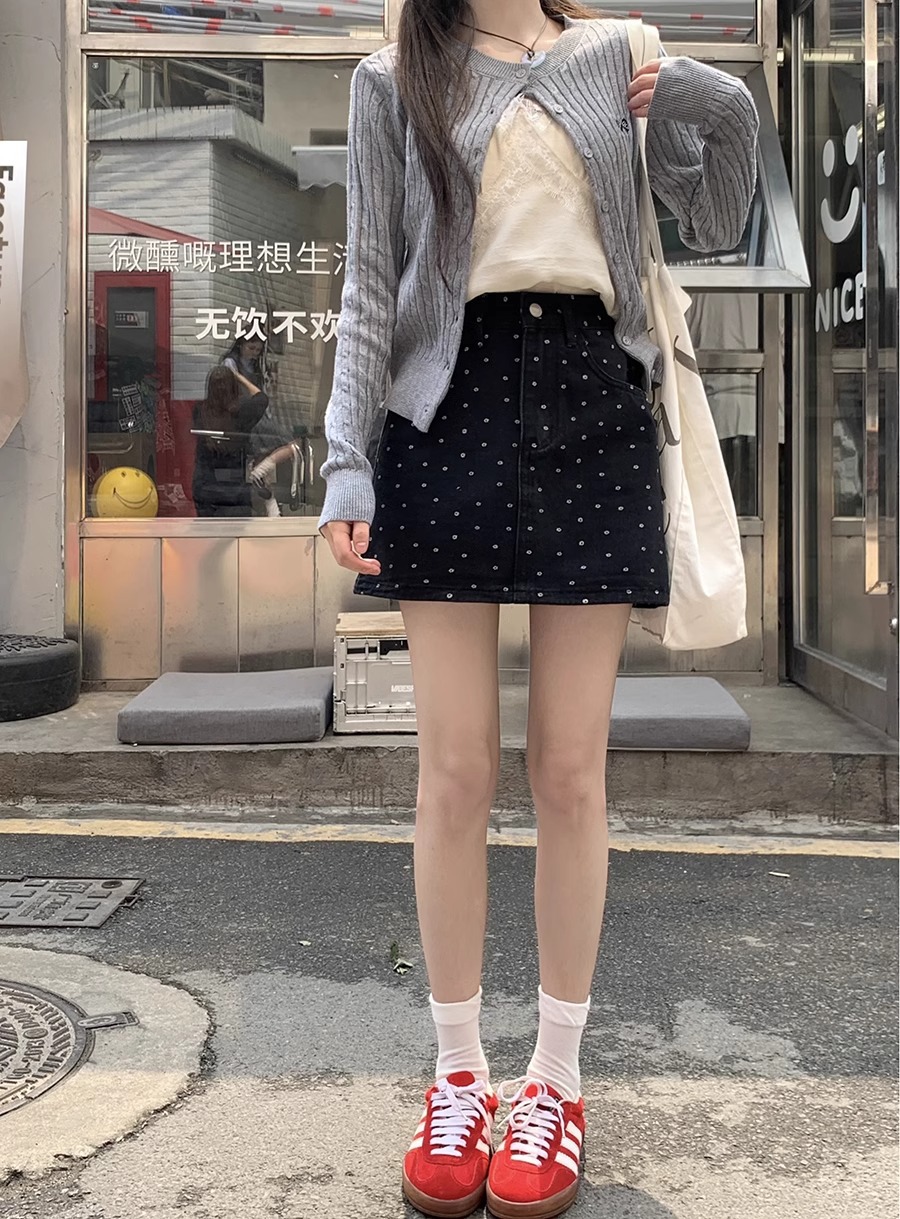 플러스 사이즈 한국 플로럴 블랙 데님 스커트 여자 여름 높은 허리 슬리밍 엉덩이 스커트 안티 러닝 A 라인 스커트스토어 가기