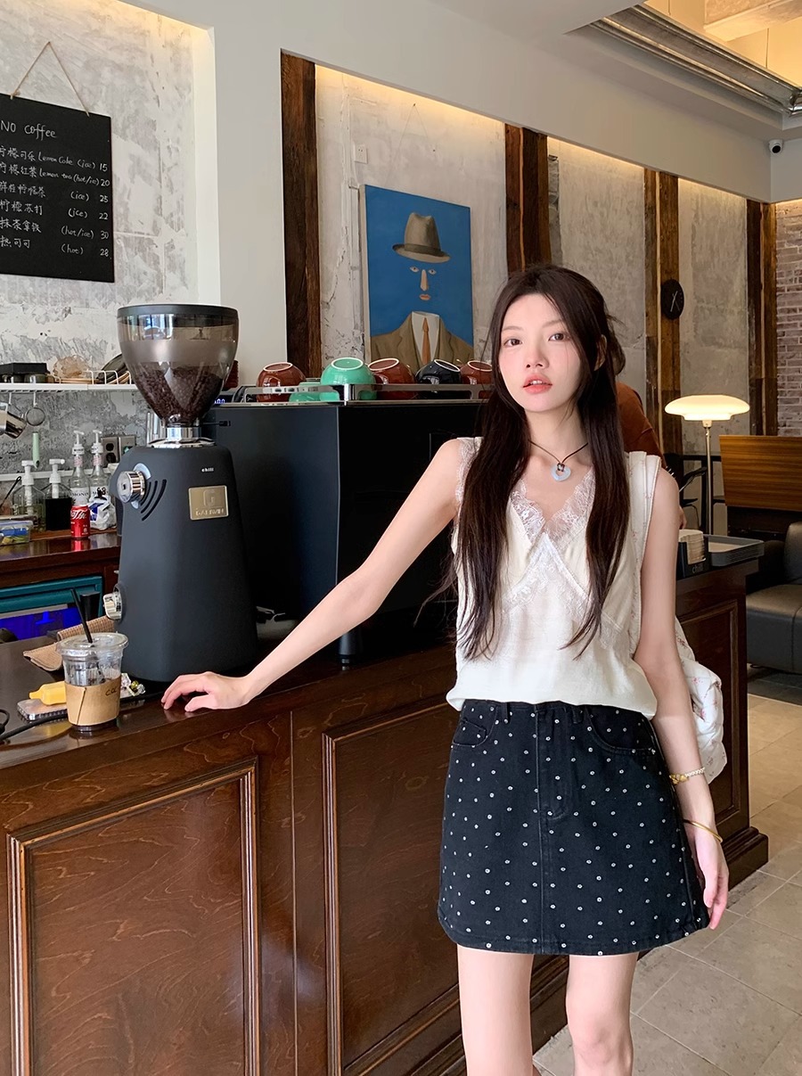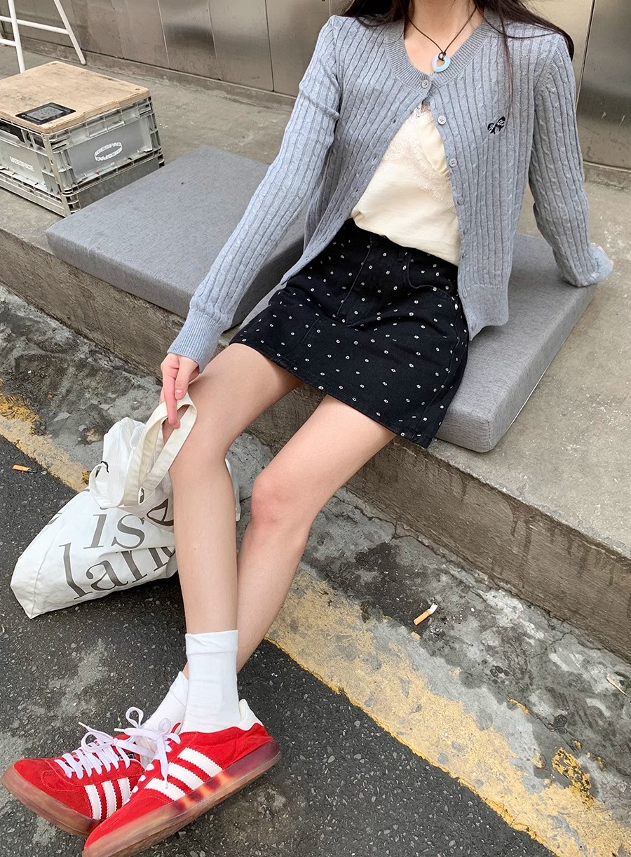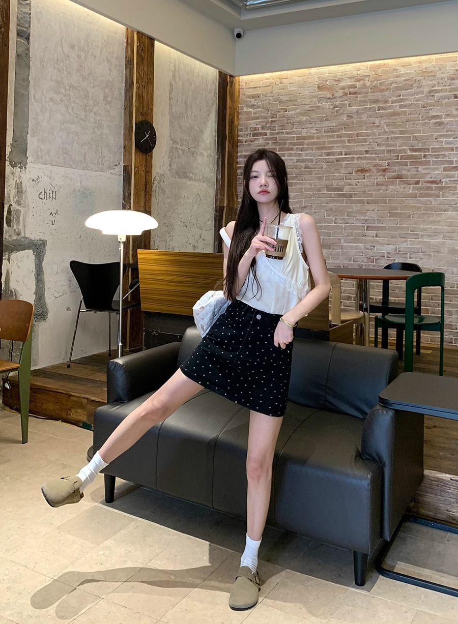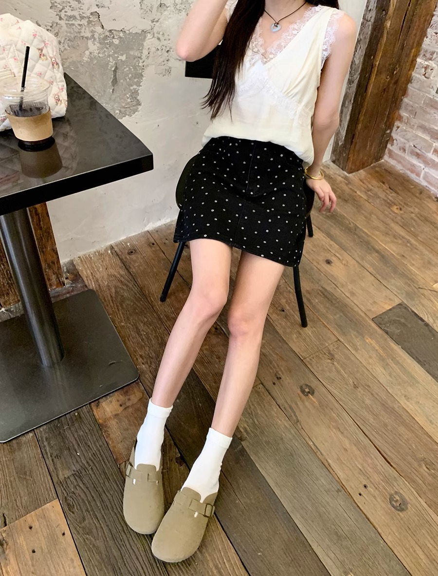 플러스 사이즈 한국 플로럴 블랙 데님 스커트 여자 여름 높은 허리 슬리밍 엉덩이 스커트 안티 러닝 A 라인 스커트스토어 가기
