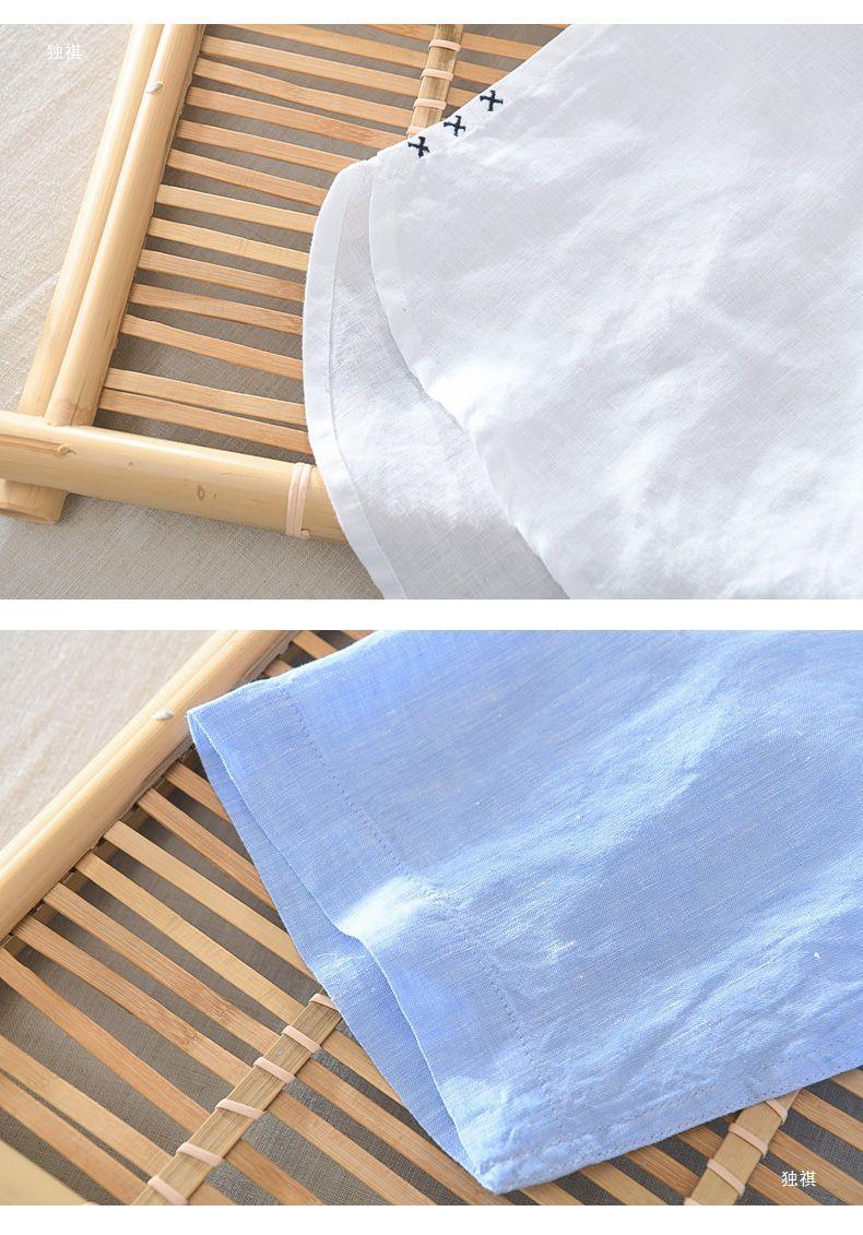 하나의 호흡 리넨 티셔츠 여름 얇은 빈티지 리넨 작은 수직 칼라 남성용 하프 슬리브 화이트와 짧은 소매 셔츠스토어 가기