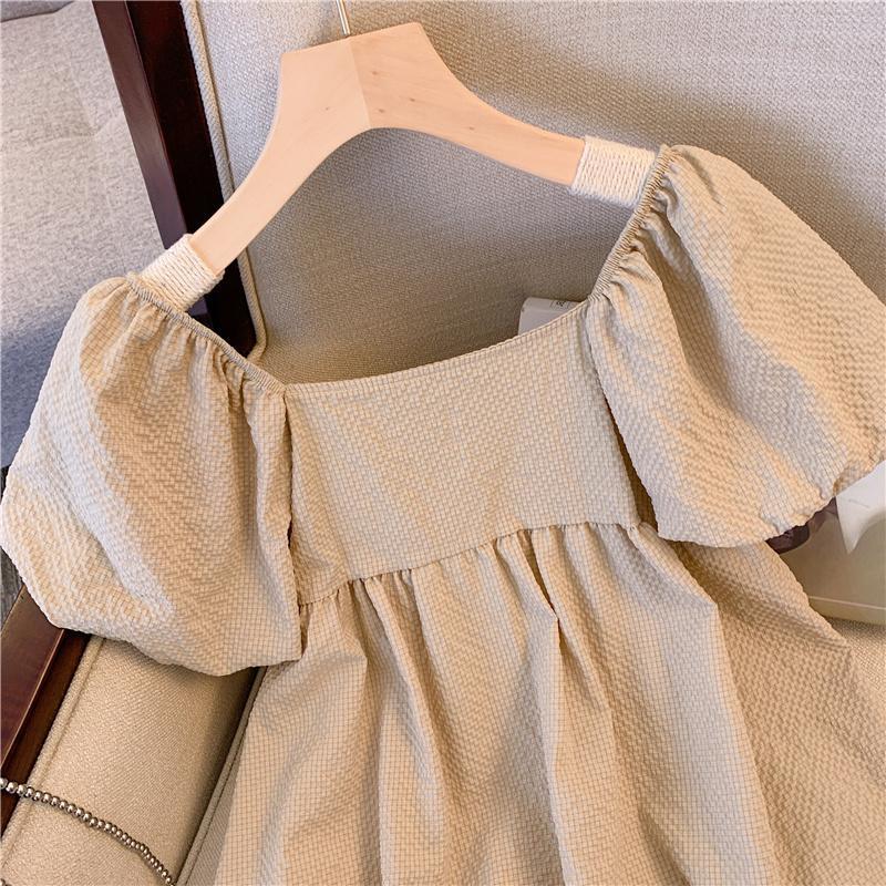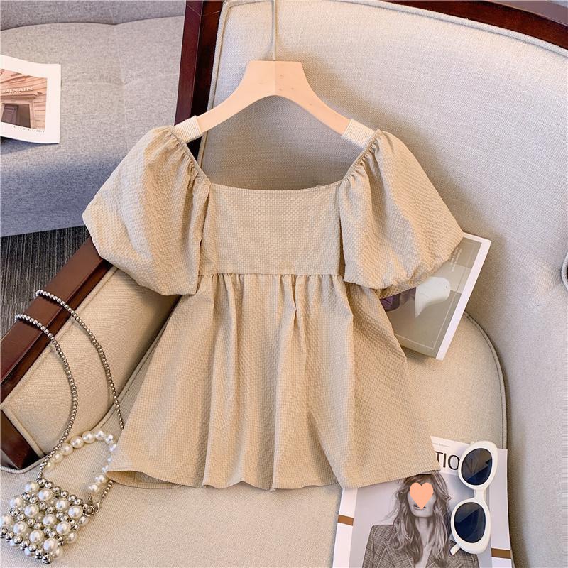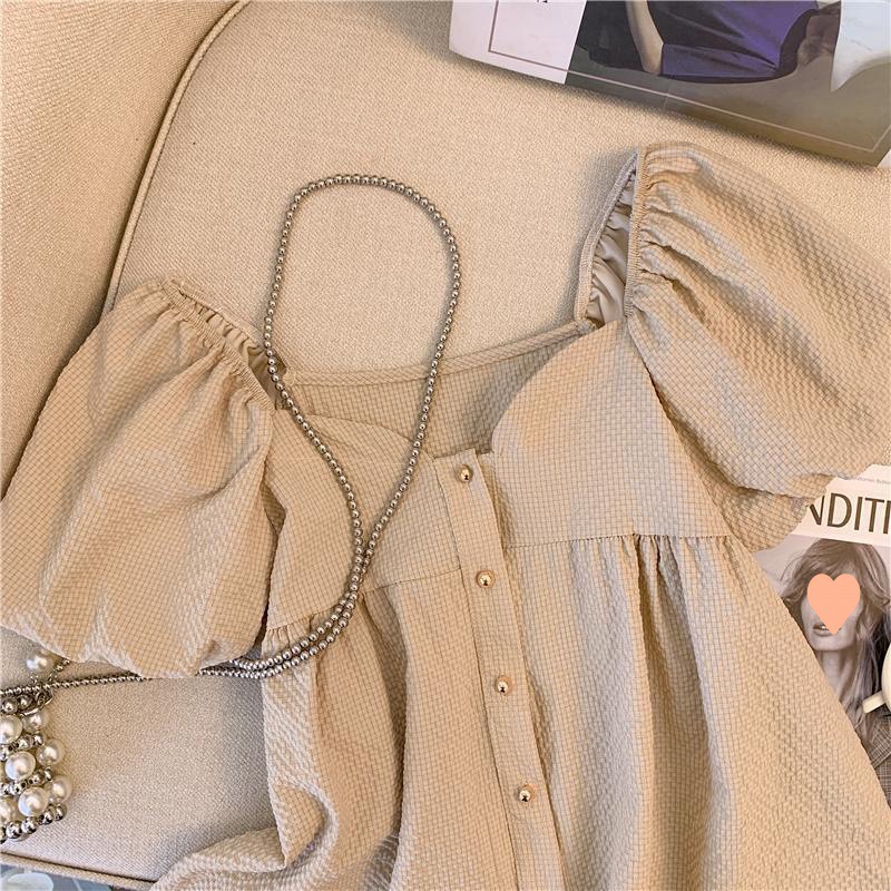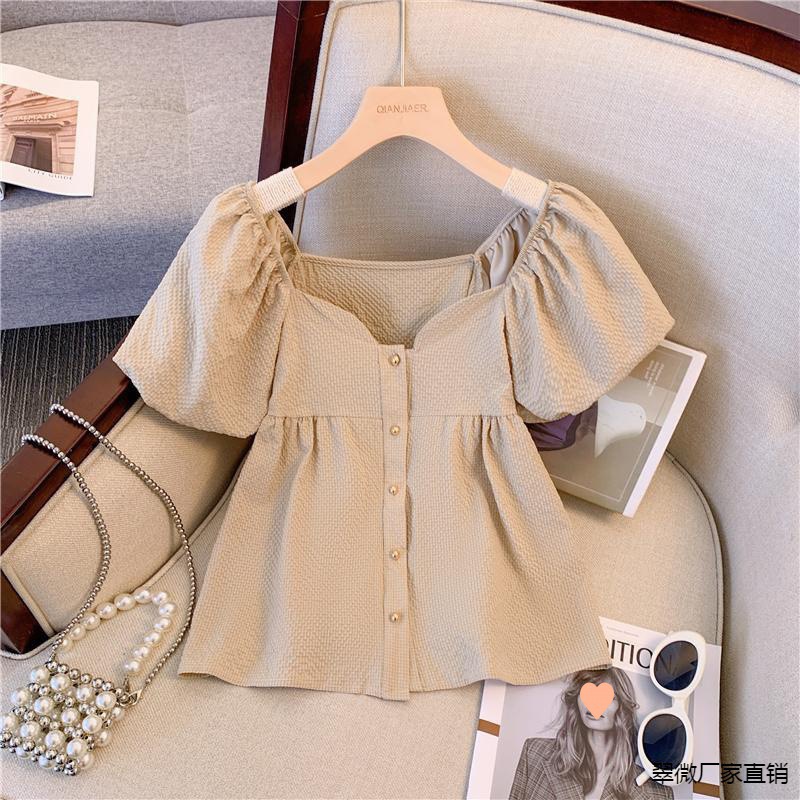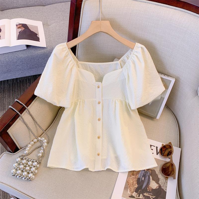 프랑스 달콤한 느슨한 배 덮기 시폰 셔츠 여성 여름 2024 새로운 스퀘어 칼라 퍼프 소매 카디건 레이디 우아한 Cuiwei스토어 가기