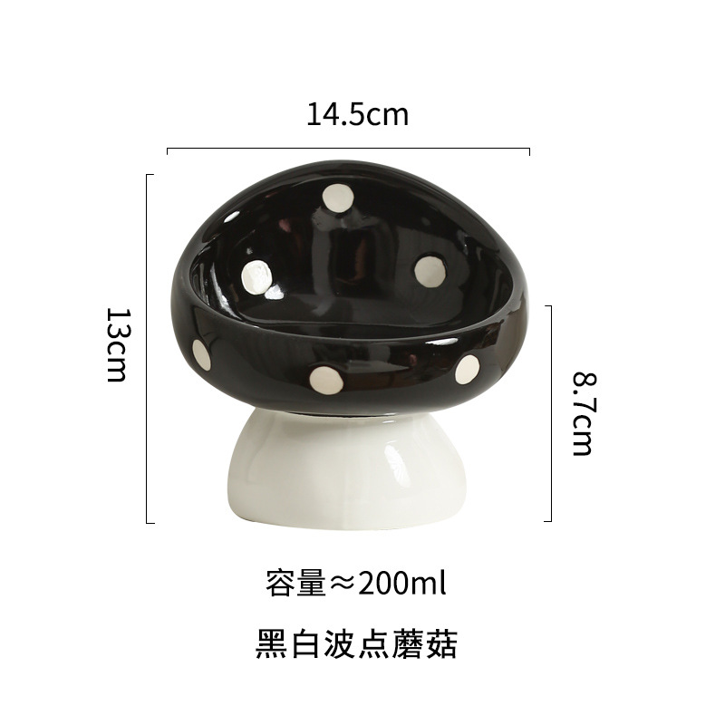 • 버섯 애완동물 그릇(흑백 물방울 무늬)