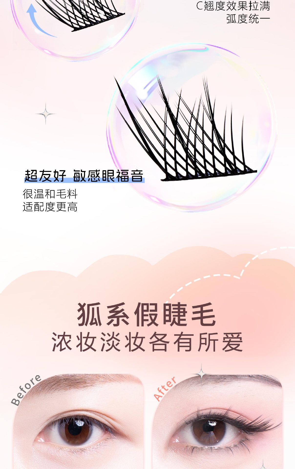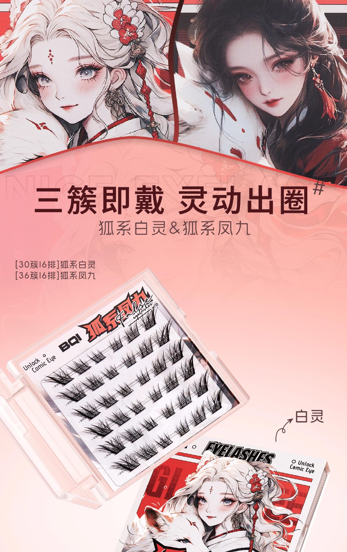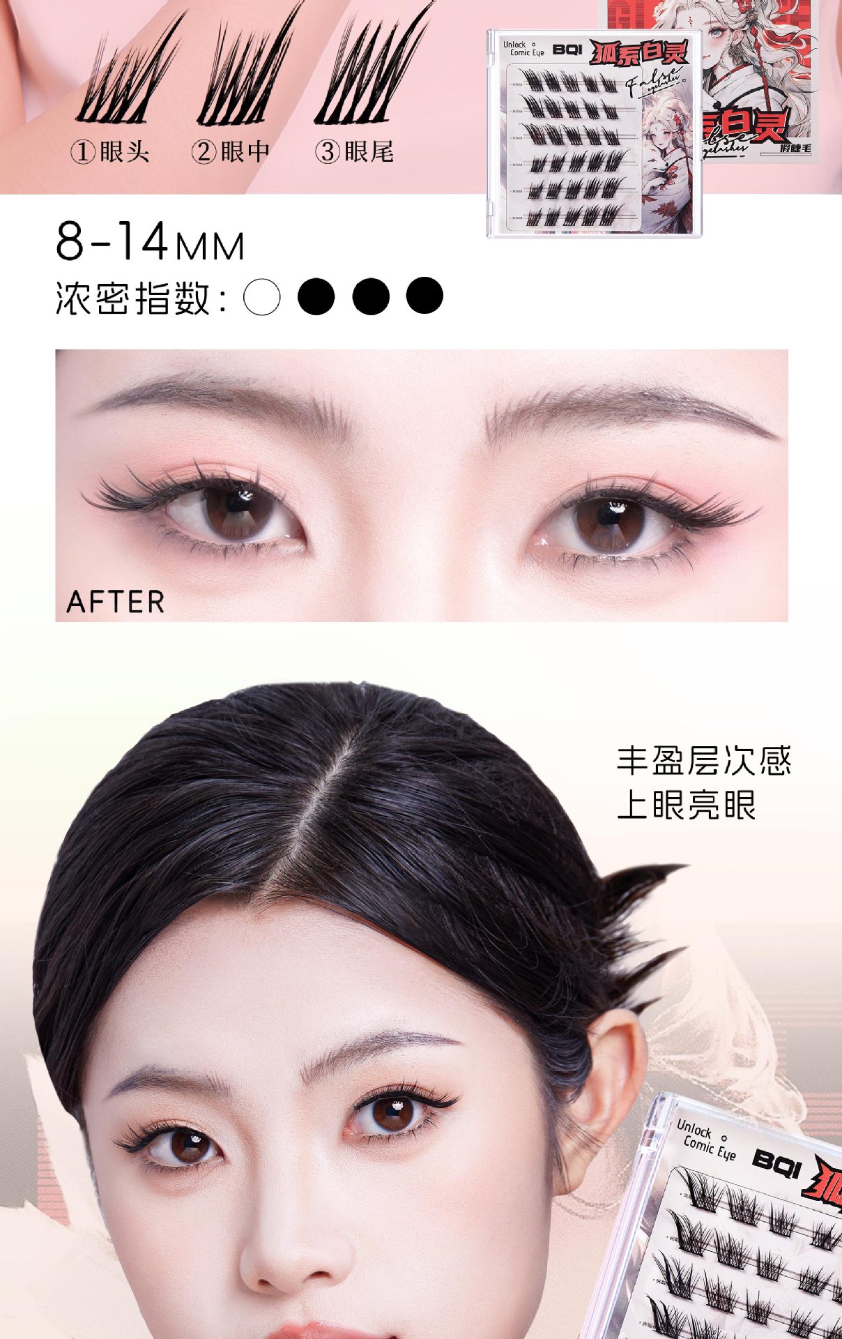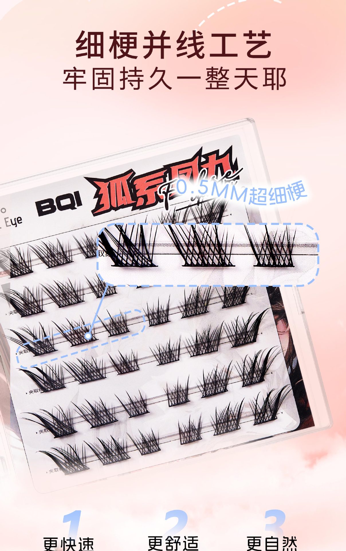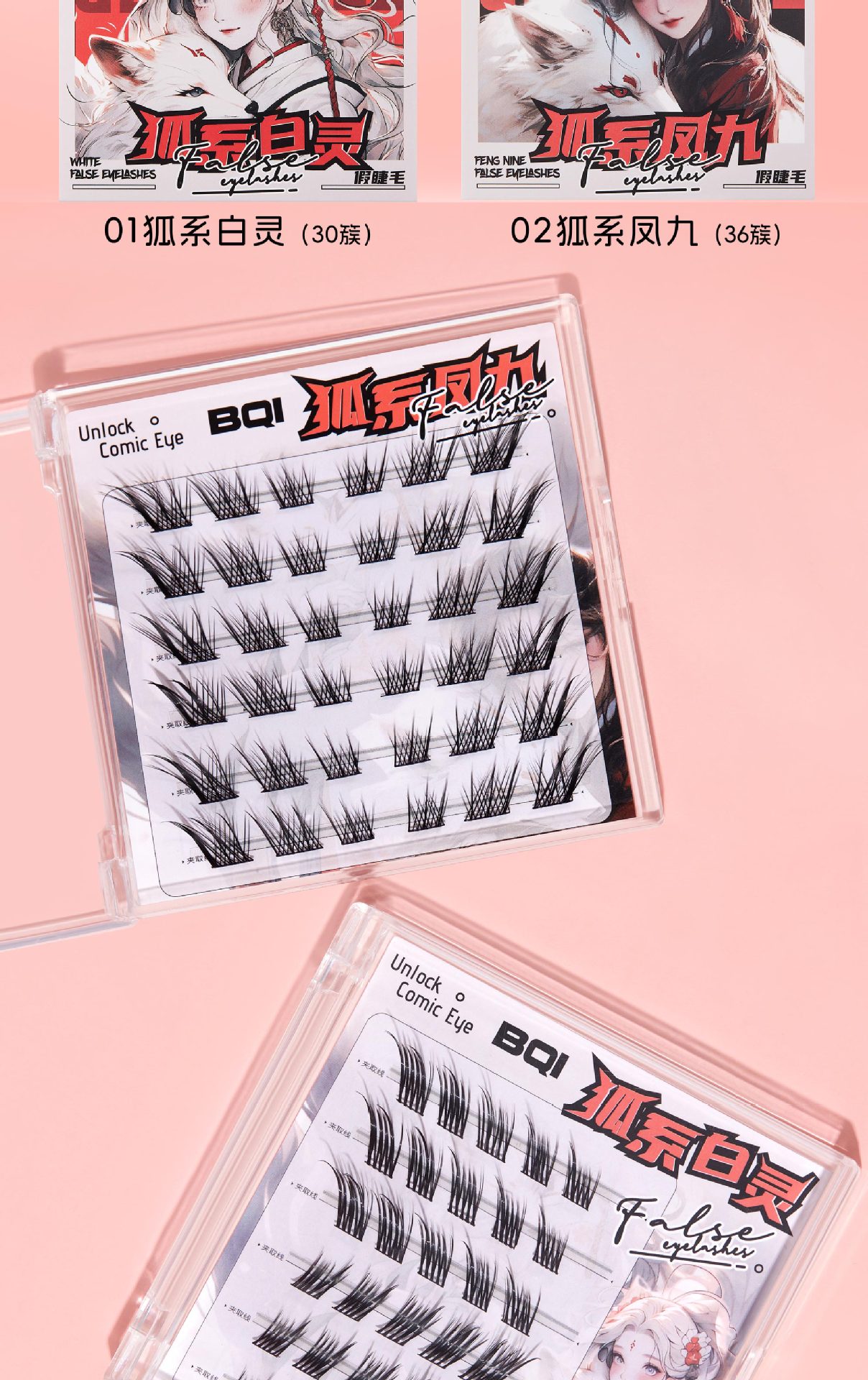 BQI 쿨 폭스 스타일 거짓 속눈썹 자연스럽고 오래 지속되는 컬링 싱글 클러스터 파인 줄기 수 다지 나인 테일 새로운 중국 스타일 거짓 속눈썹스토어 가기