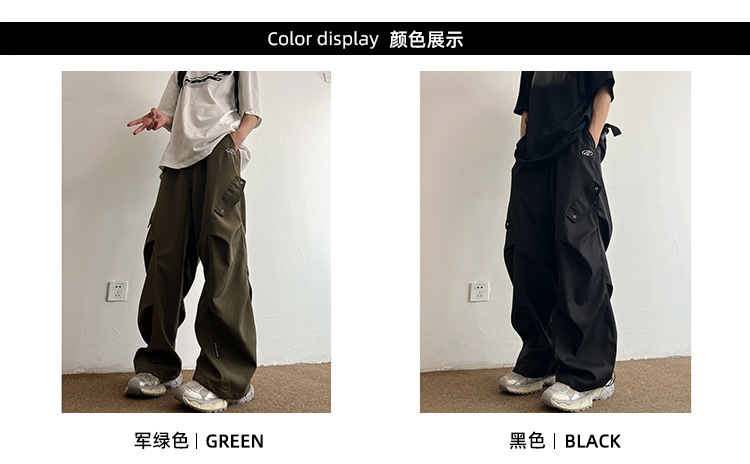 카키 작업복 남성 여름 얇은 주름 디자인 낙하산 바지 느슨한 직선 넓은 다리 캐주얼 바지스토어 가기