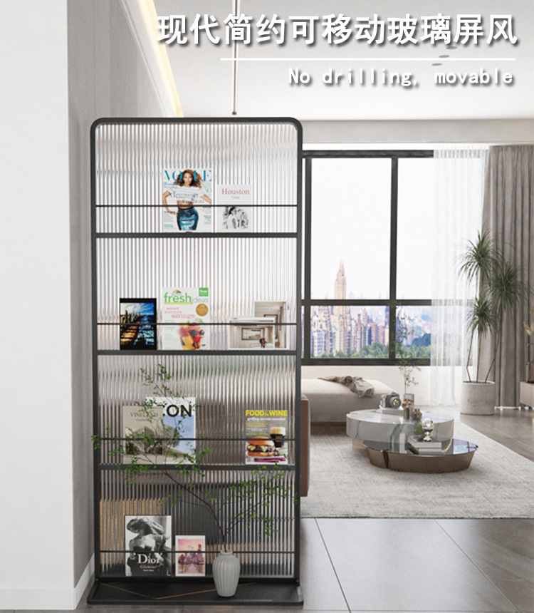 창홍 유리 파티션 입구 문 거실 입구 현대 간단한 빛 럭셔리 책꽂이 소파 스크린 이동 가능스토어 가기