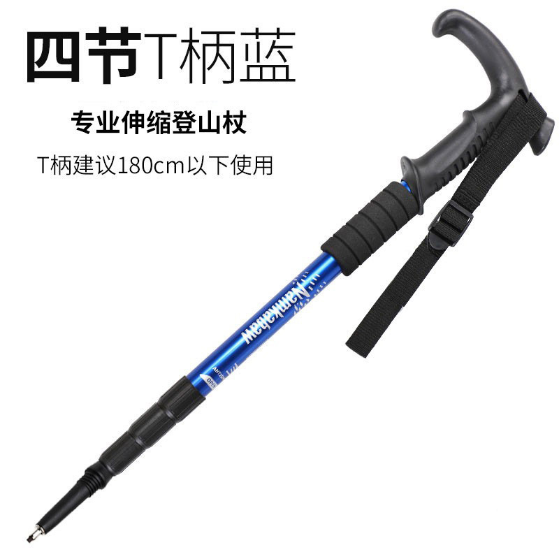 야외 등산 스틱, 접이식 등산 지팡이, 등산 장비, 경량 알루미늄 합금, 미끄럼 방지 곡선 손잡이