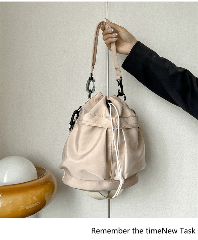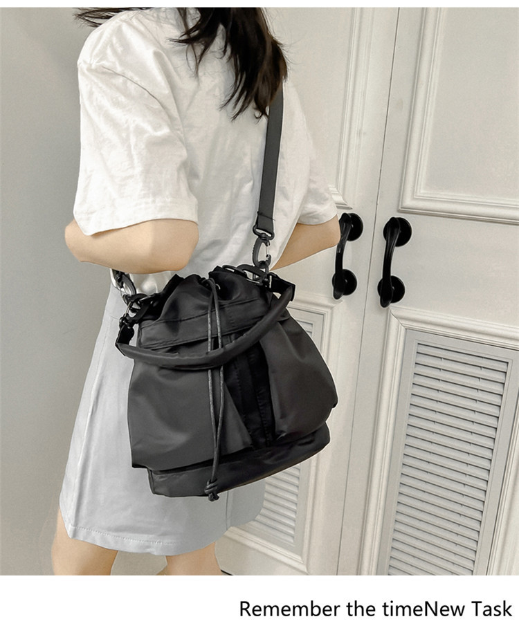여름 독특한 어깨 가방 캐주얼 서랍 접이식 가방 대용량 경량 휴대용 나일론 버킷 가방 여성용