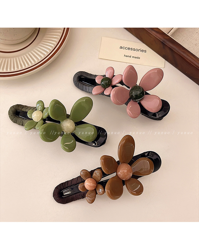 빈티지 꽃 한국 스타일 한 단어 잡아 클립 여성의 2024 새로운 하이 엔드 센스 덕 빌 헤어핀 머리 상어 클립스토어 가기