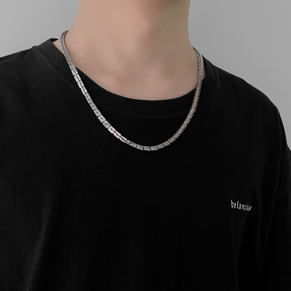 틈새 디자인 달콤한 쿨 스타일 스퀘어 핑크 다이아몬드 라이트 럭셔리 스타일 힙합 더블 레이어 목걸이 남성용 간단한 목걸이스토어 가기