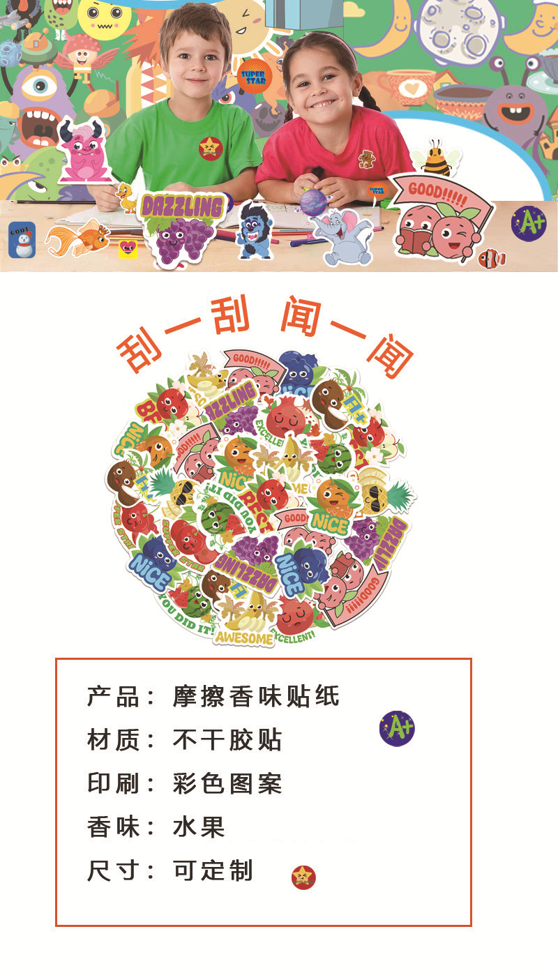 跨境热销香味贴纸儿童香味贴纸套装刮刮香贴纸摩擦水果香味不干胶