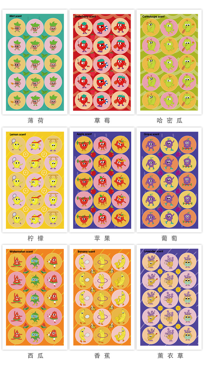 국경 간 뜨거운 판매 향수 스티커 어린이 향수 스티커 세트 스크래치 향수 스티커 마찰 과일 향수 스티커스토어 가기
