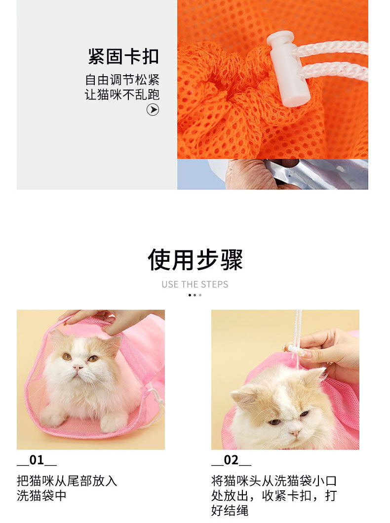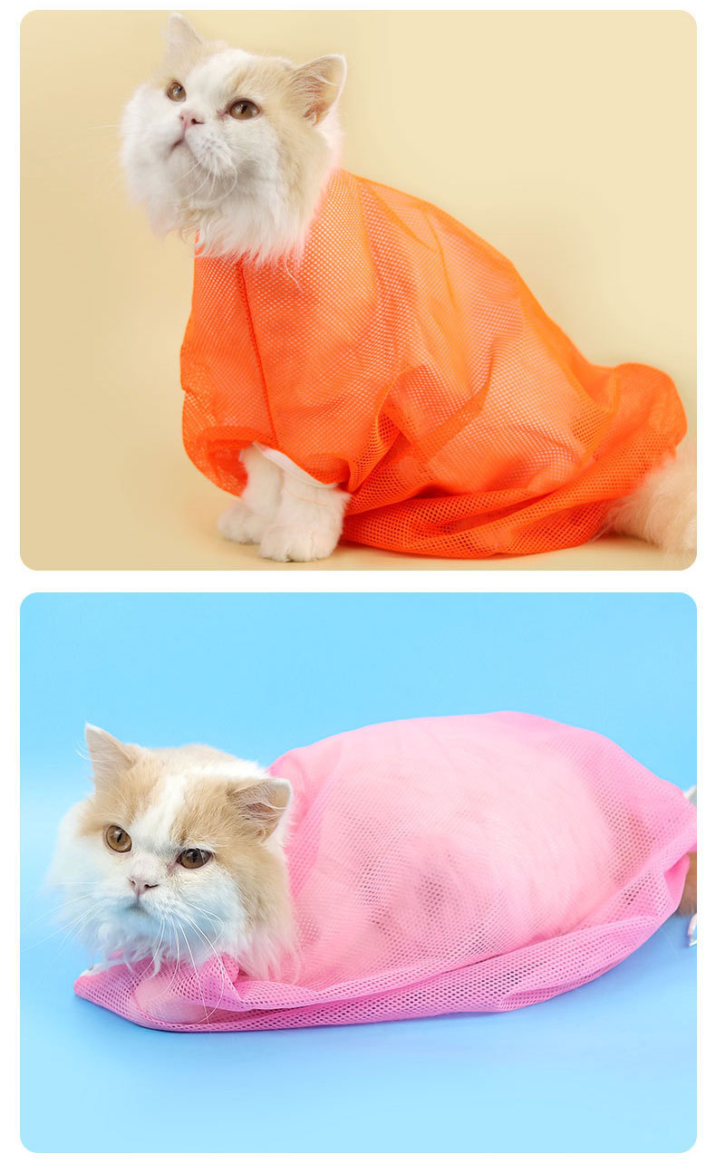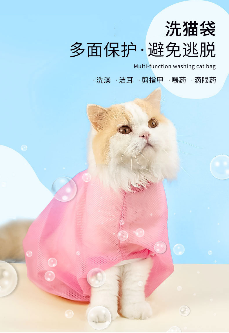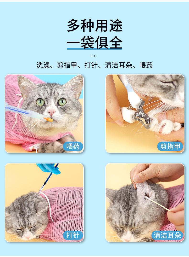 고양이 워시 가방 고양이 워시 고양이 뷰티 키티 컷 손톱 안티 스크래치 고정 애완 동물 청소 용품 메쉬 목욕 가방