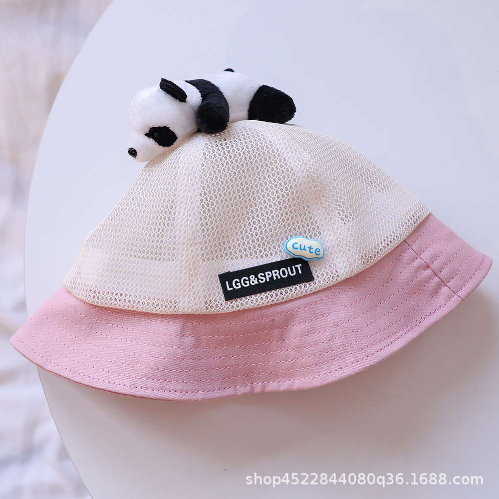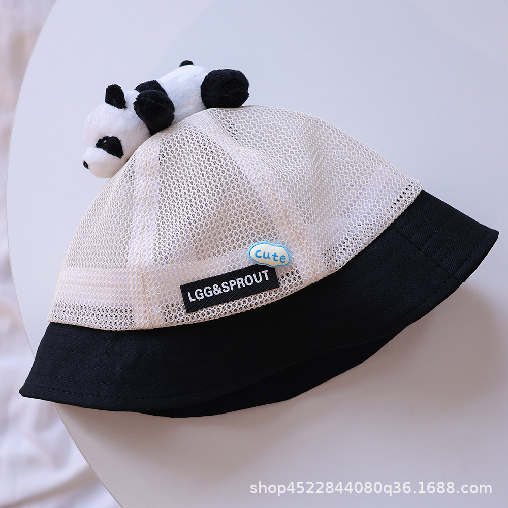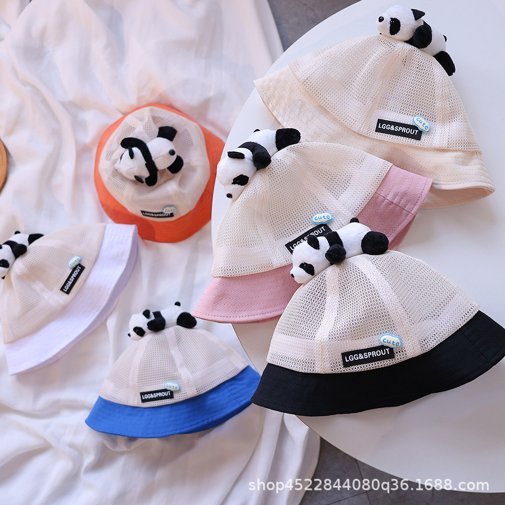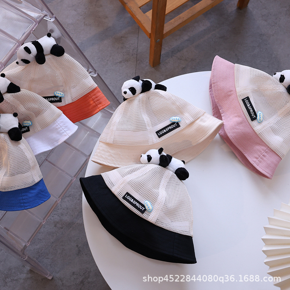 티베트 달 어린이 모자 여름 얇은 통기성 메쉬 어부 모자 슈퍼 귀여운 만화 팬더 선 스크린 냄비 모자 소년 소녀스토어 가기