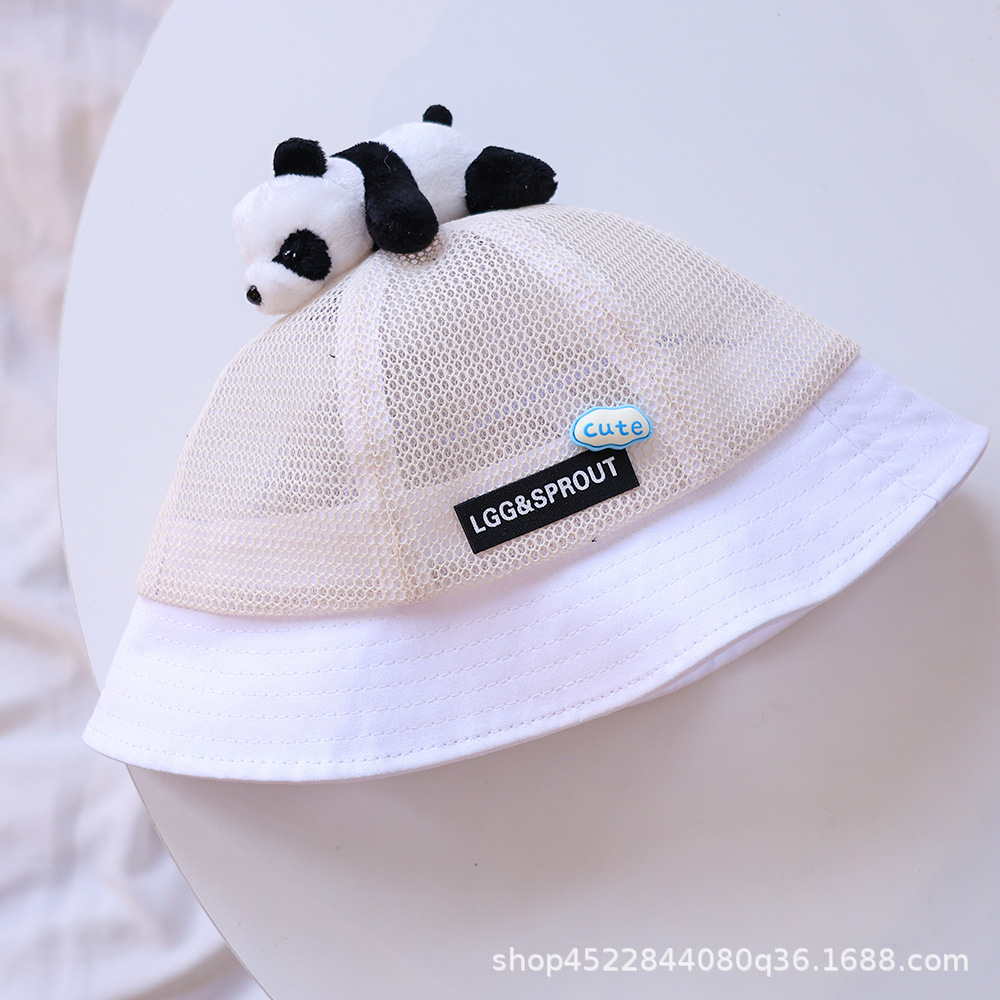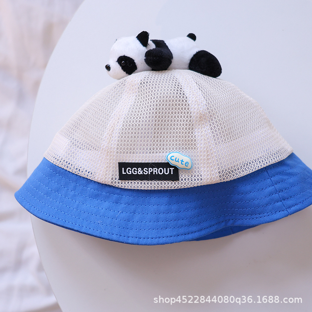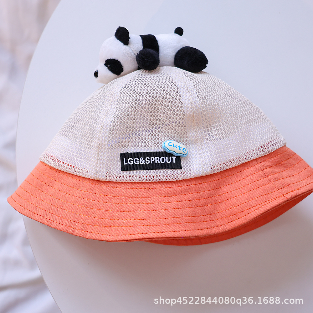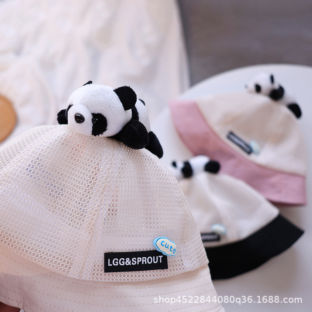 티베트 달 어린이 모자 여름 얇은 통기성 메쉬 어부 모자 슈퍼 귀여운 만화 팬더 선 스크린 냄비 모자 소년 소녀스토어 가기