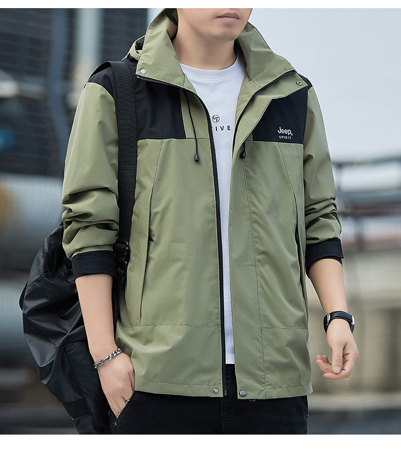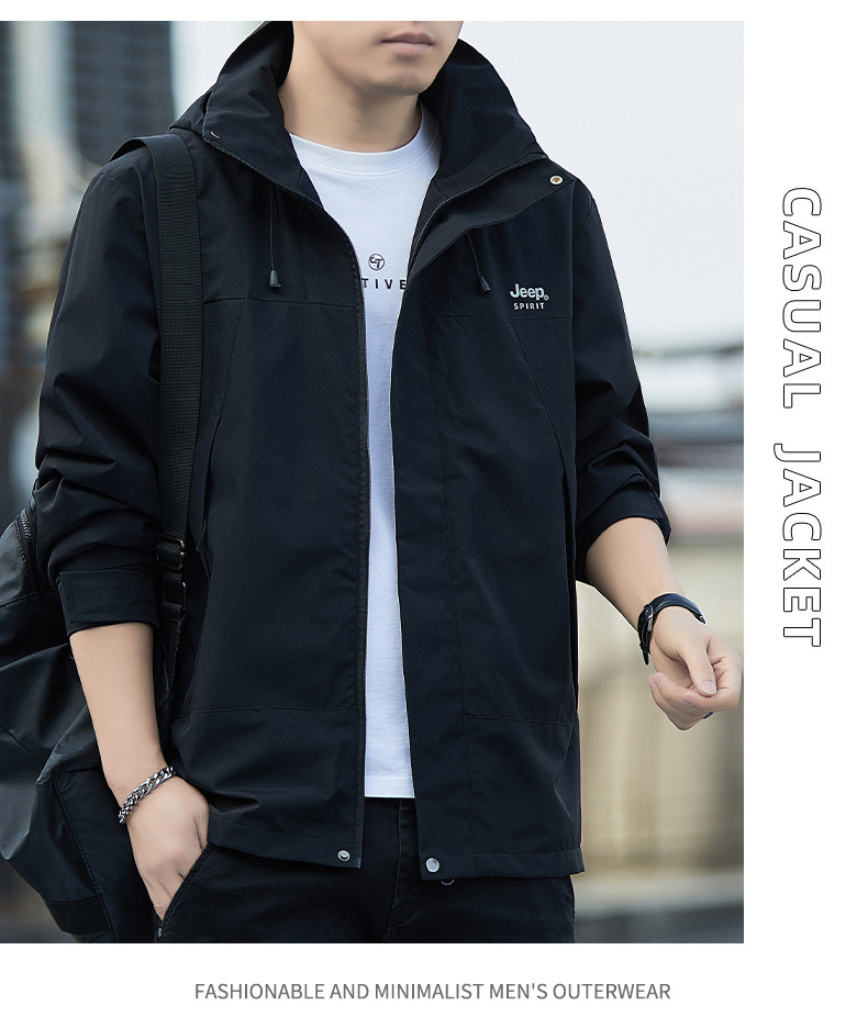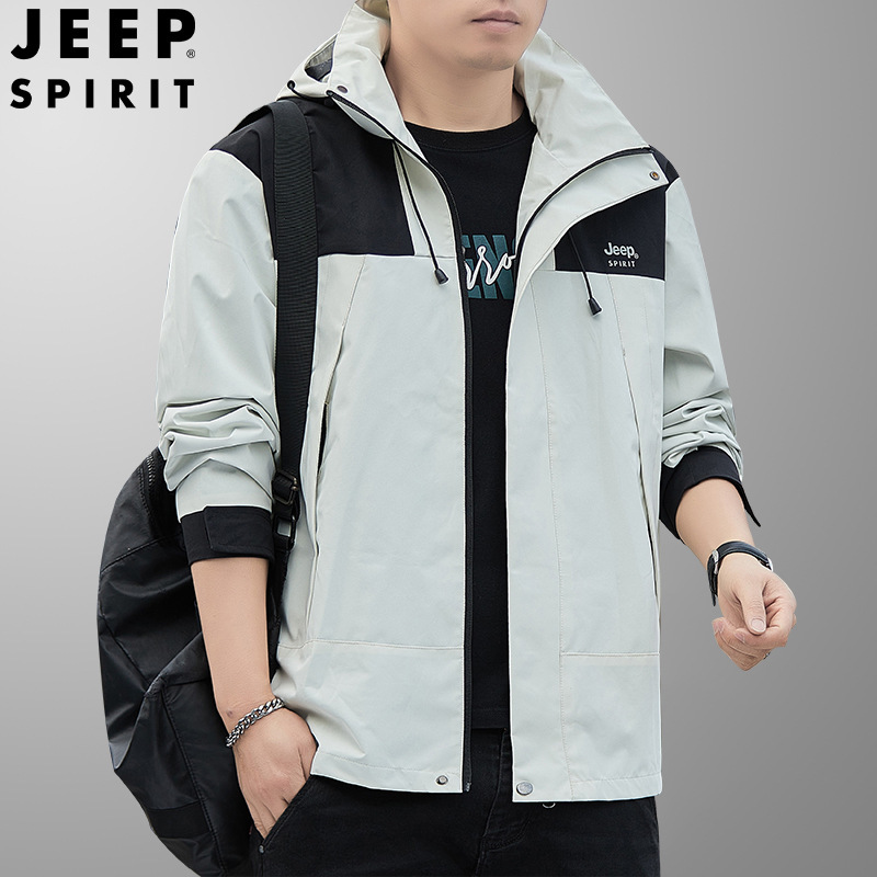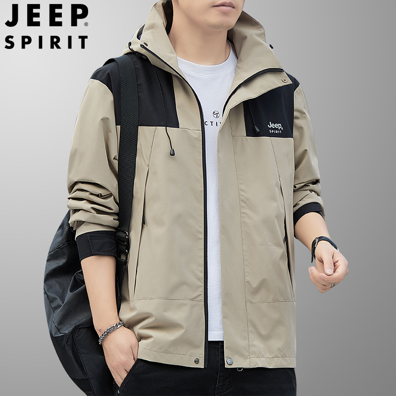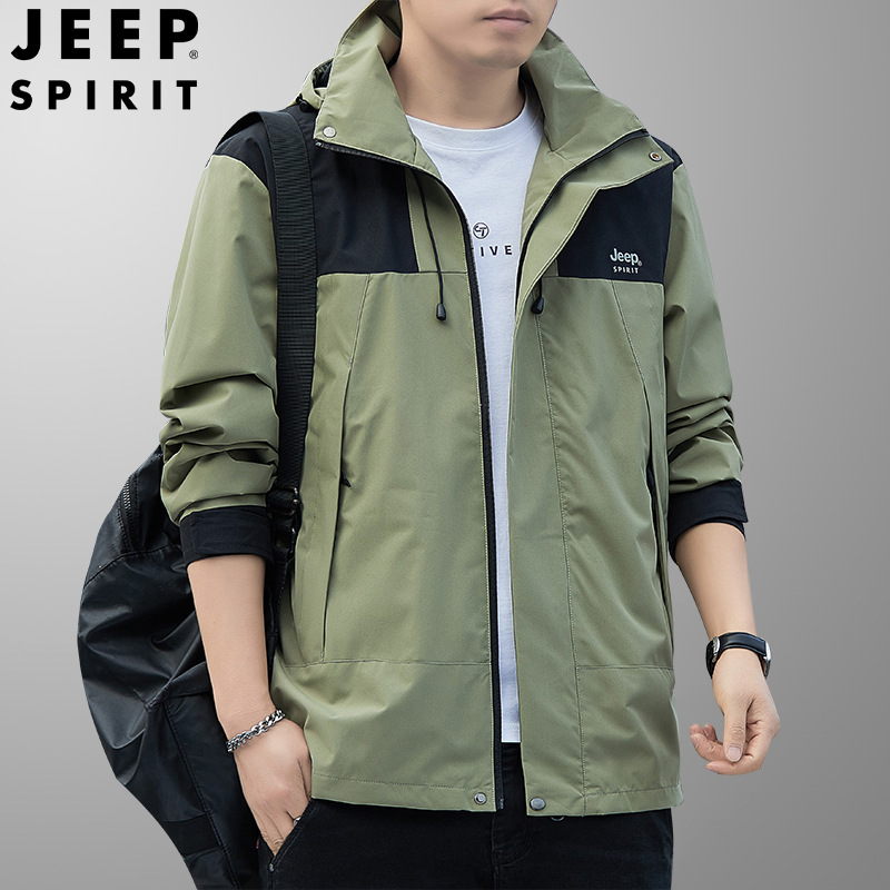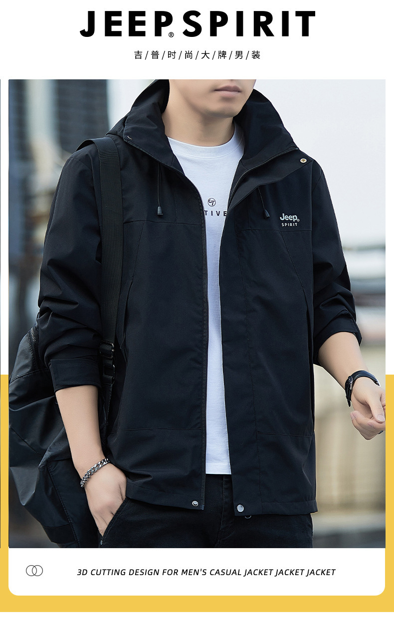 JEEP SPIRIT 봄과 가을 분리 가능한 모자 자켓 남성 패션 캐주얼 야외 러쉬 자켓 남성 의류스토어 가기