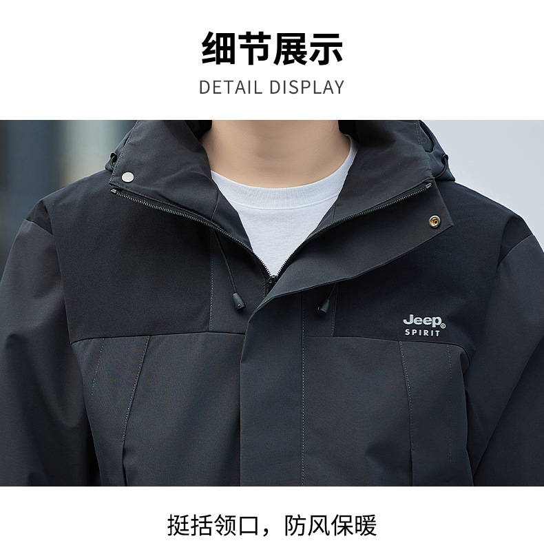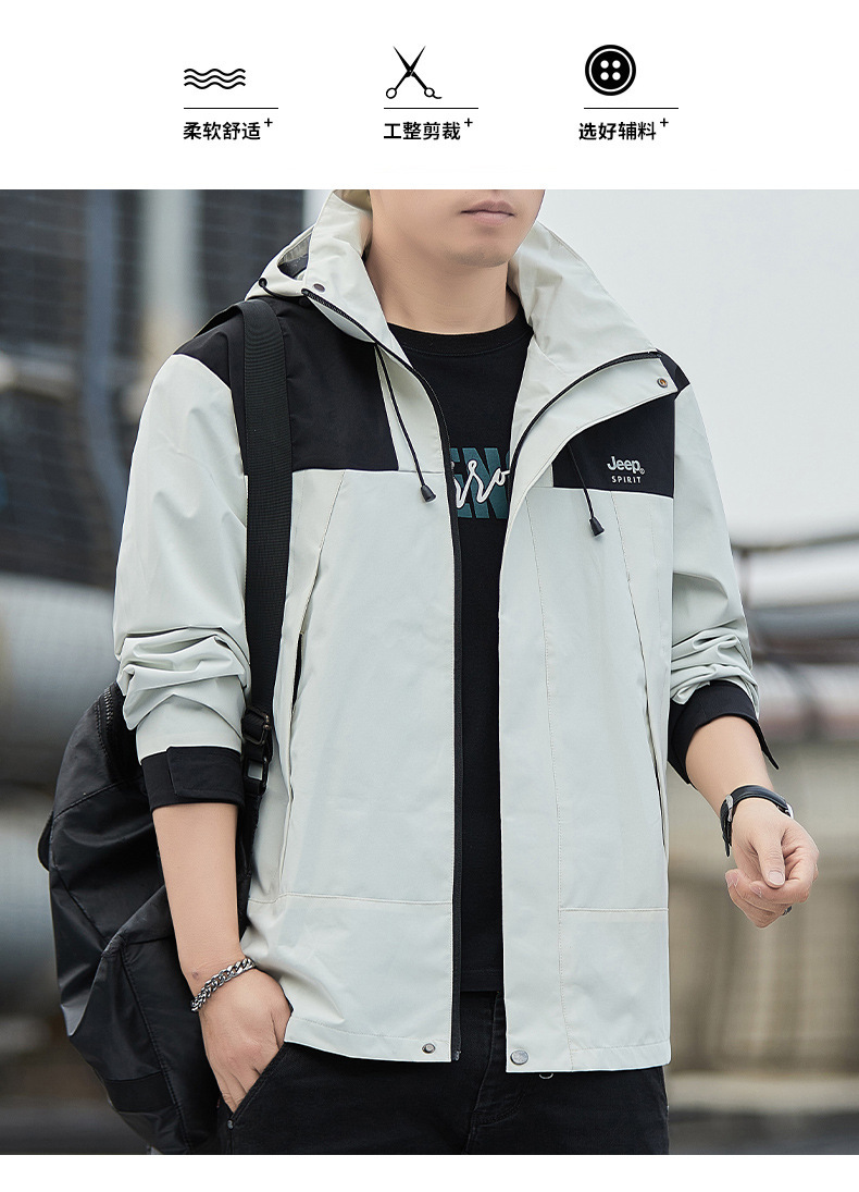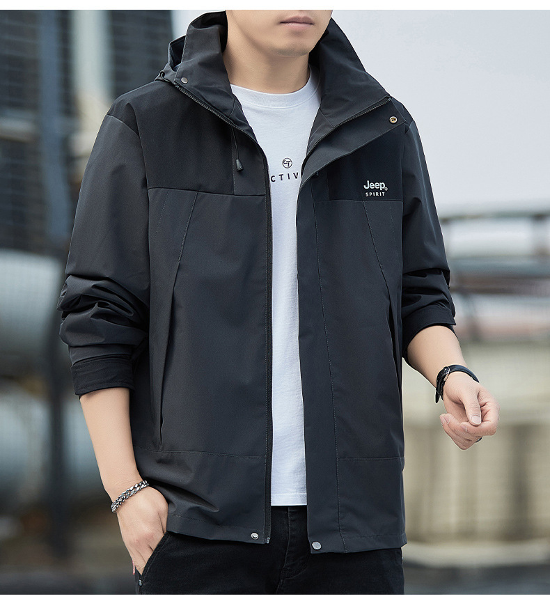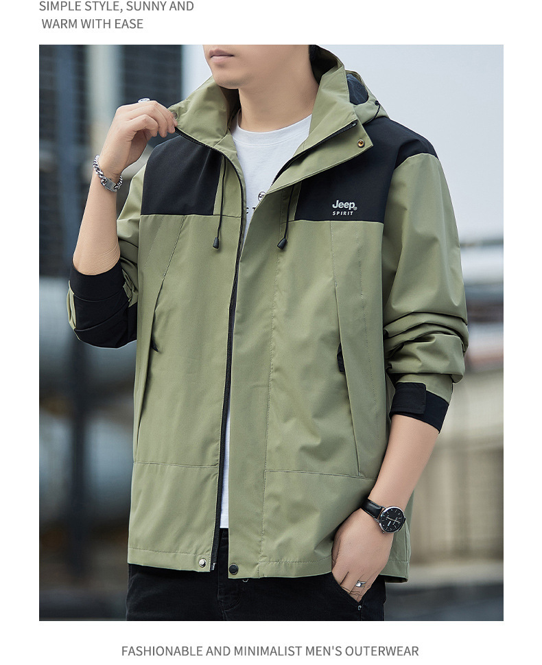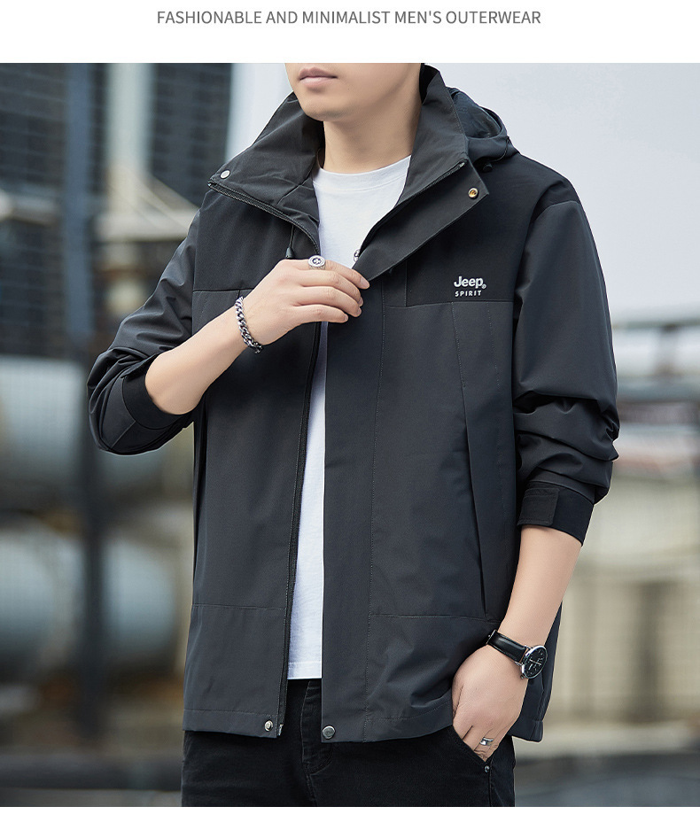 JEEP SPIRIT 봄과 가을 분리 가능한 모자 자켓 남성 패션 캐주얼 야외 러쉬 자켓 남성 의류스토어 가기