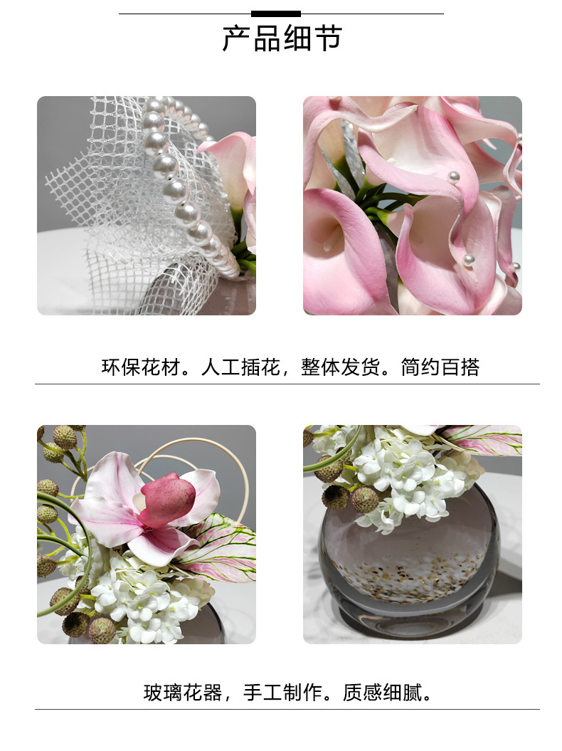 현대 핑크 빛 럭셔리 시뮬레이션 식물 양식 모델 룸 거실 식사 테이블 커피 테이블 판매 사무실 가짜 꽃 장식 바탕 화면