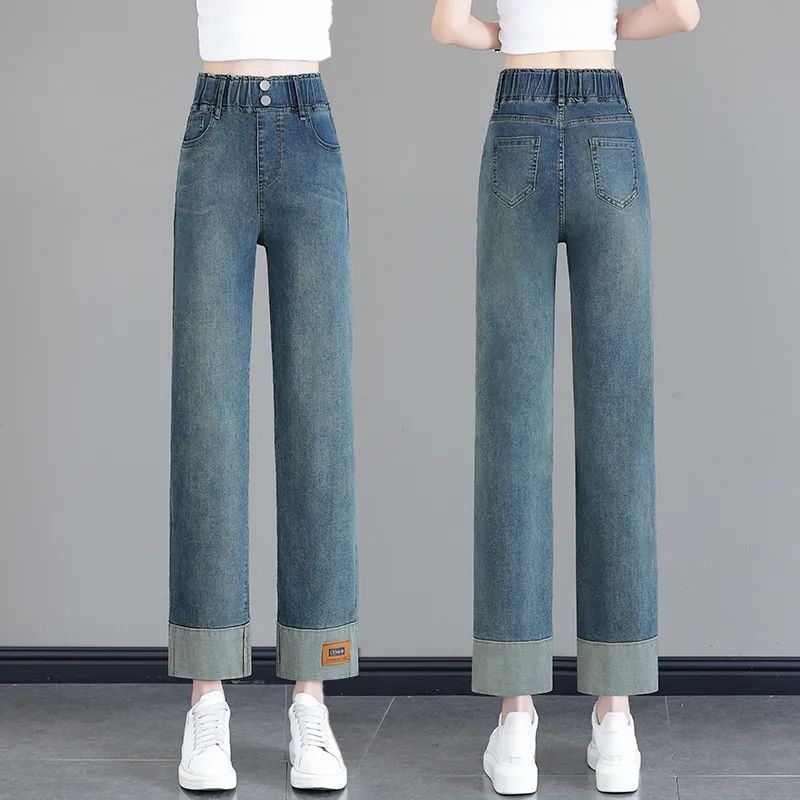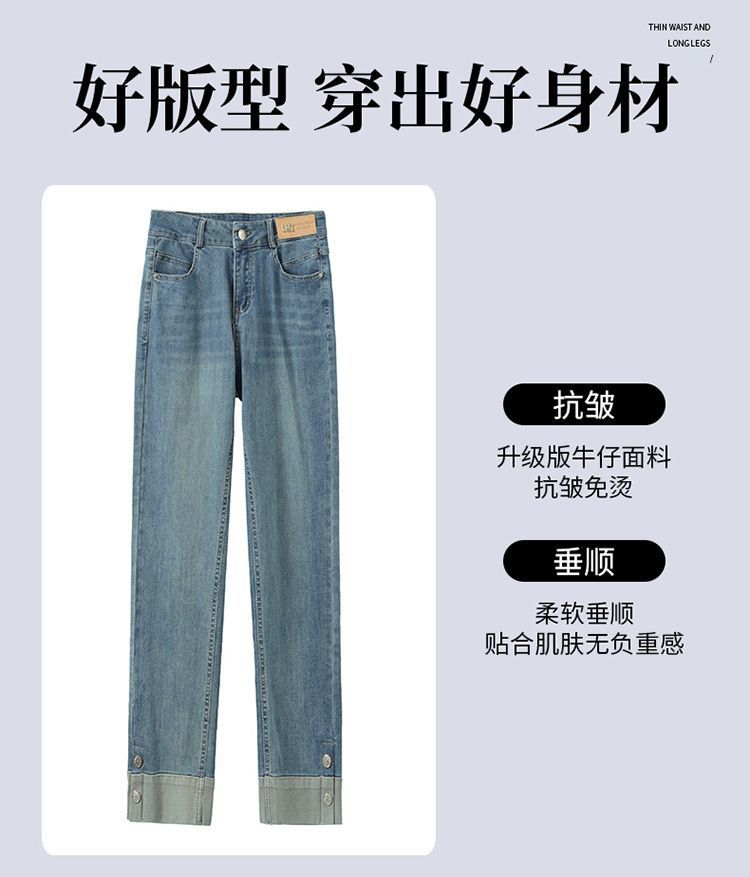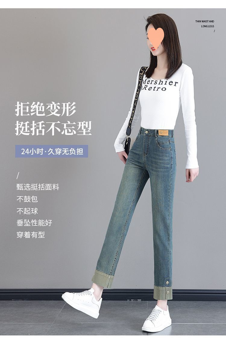좁은 스트레이트 레그 청바지 여성 봄과 여름 2024 새로운 하이 웨이스트 슬림 핏 9 포인트 컬드 연기 파이프 9 점 바지스토어 가기