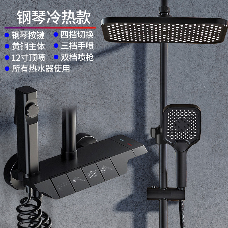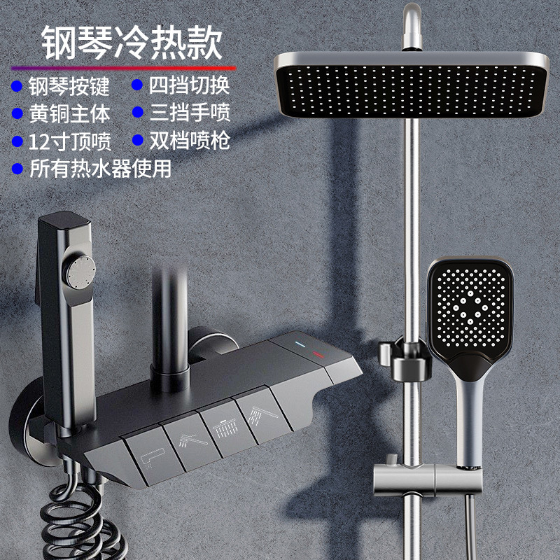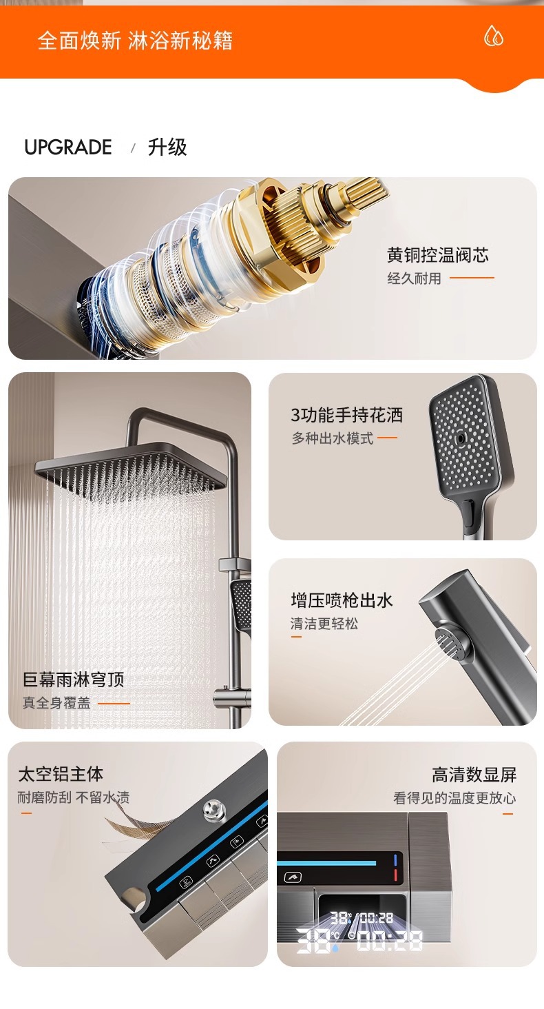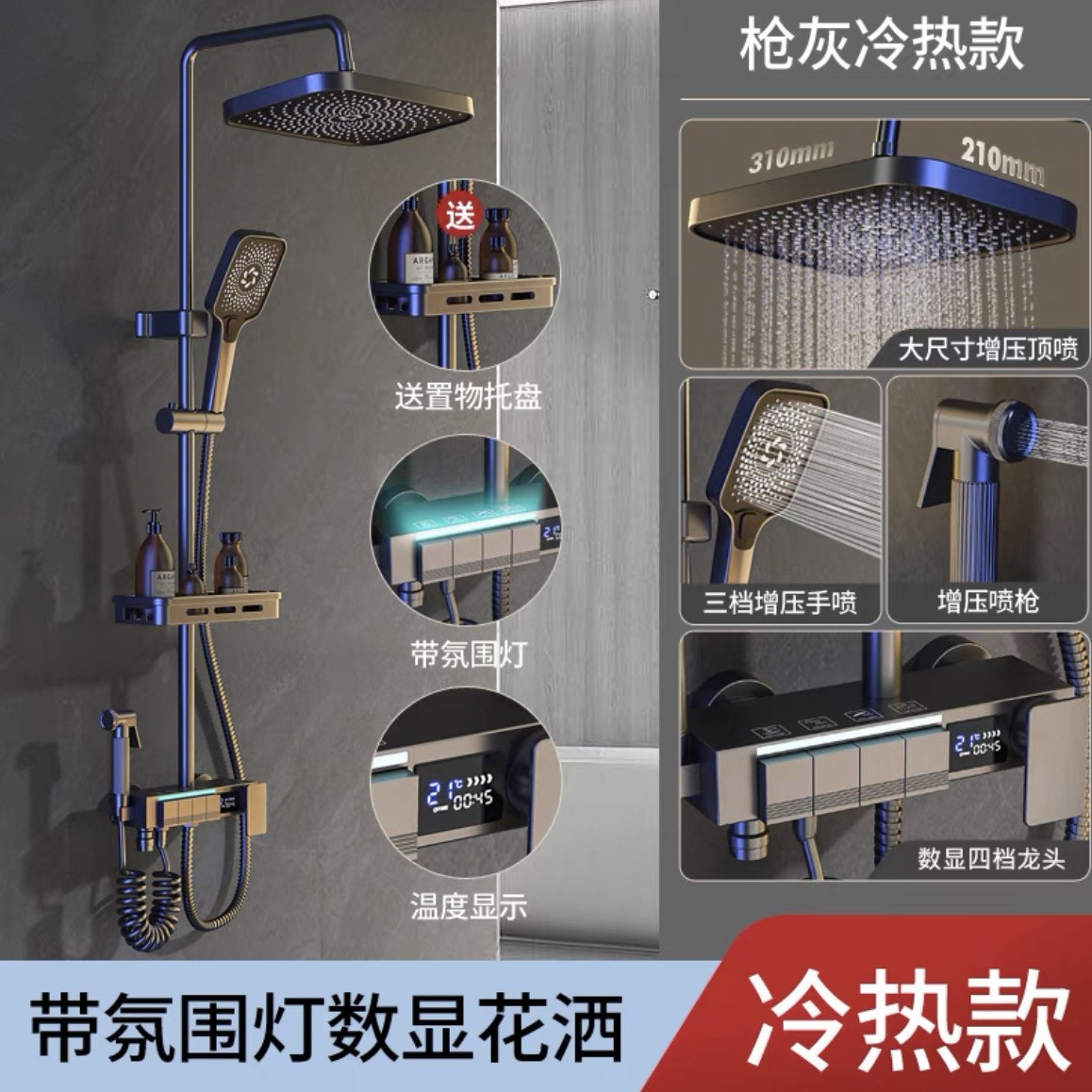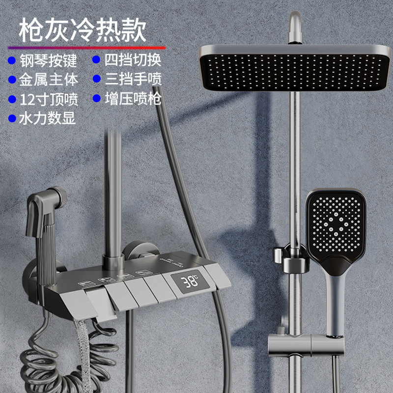 • 물 도금 건 그레이 피아노 스타일 [스케일 방지를 위한 전체 구리 본체] 샤워 + 주변 조명 디지털 디스플레이