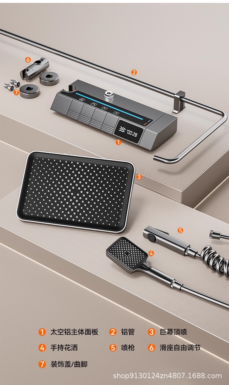 • 물 도금 건 그레이 갤럭시 스타일 [알루미늄 바디] 샤워 + 주변광 디지털 디스플레이