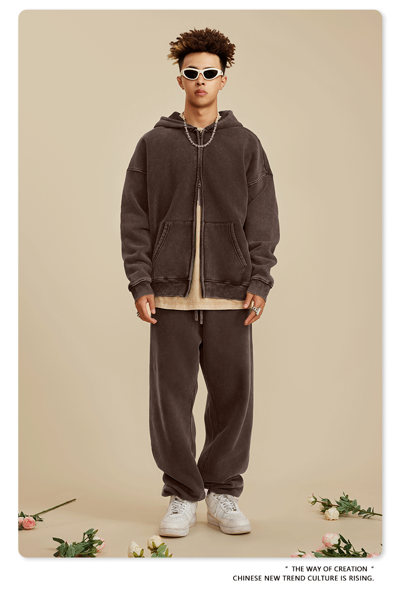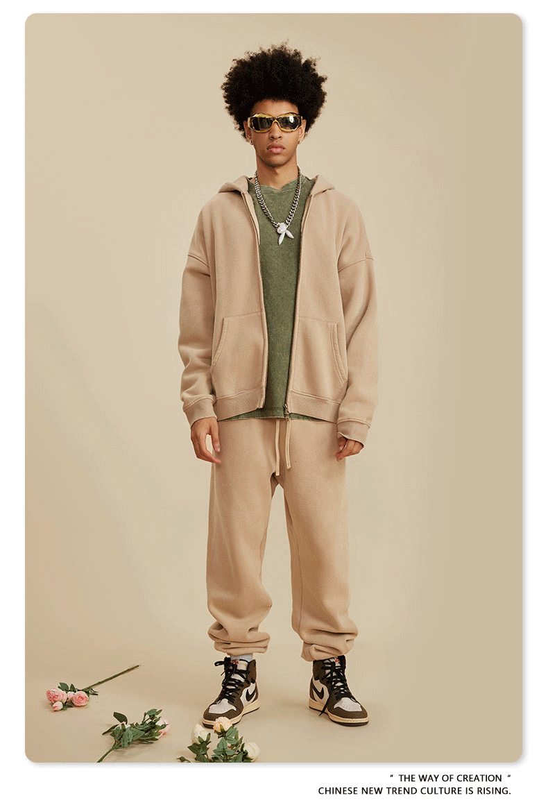 BE 남성복 | 2025 가을 헤비 오버사이즈 카디건 후드 스웨트셔츠 루즈 트렌디 브랜드 지퍼 재킷 슈트