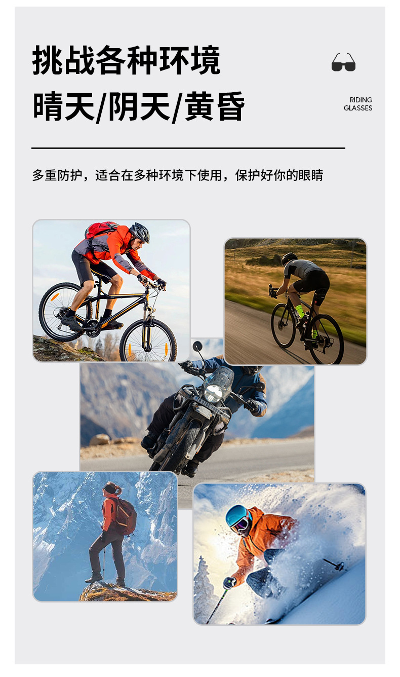 폭발 다채로운 승마 안경 등산 스포츠 선글라스 색상 변경 승마 고글 UV 방지 선글라스 운전