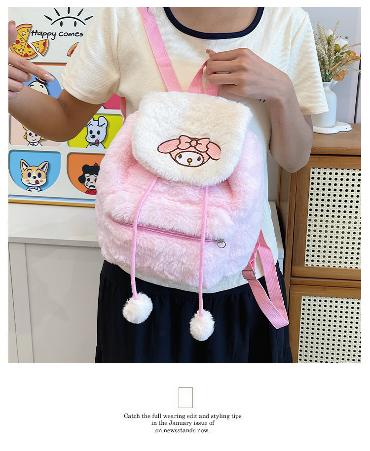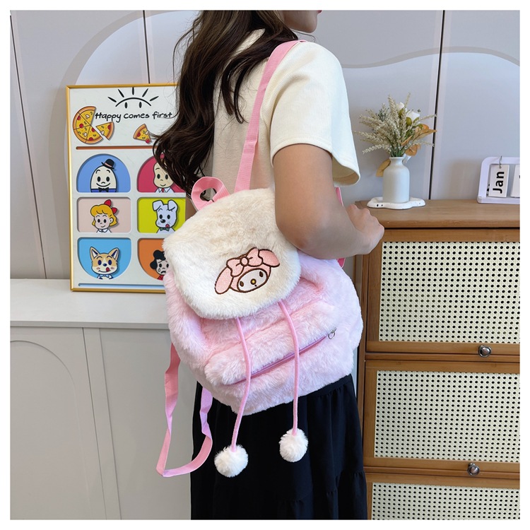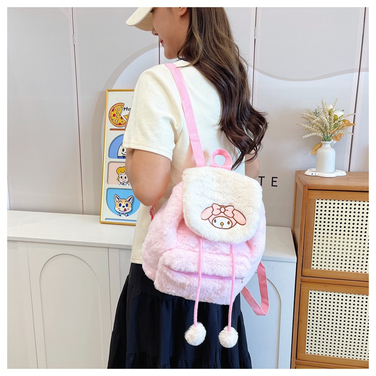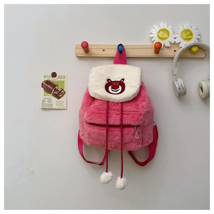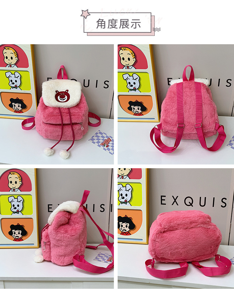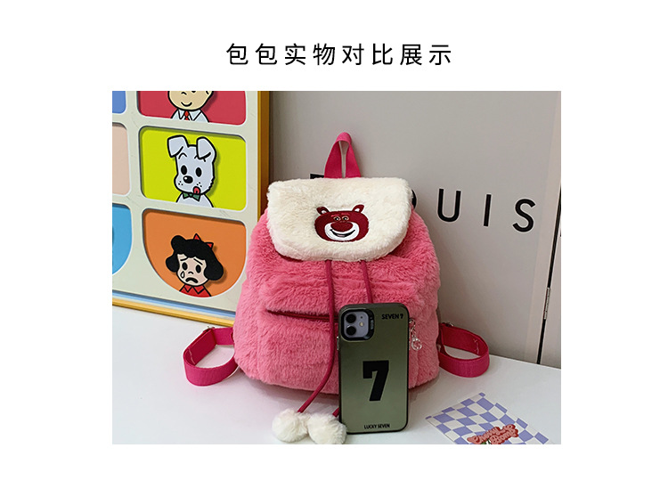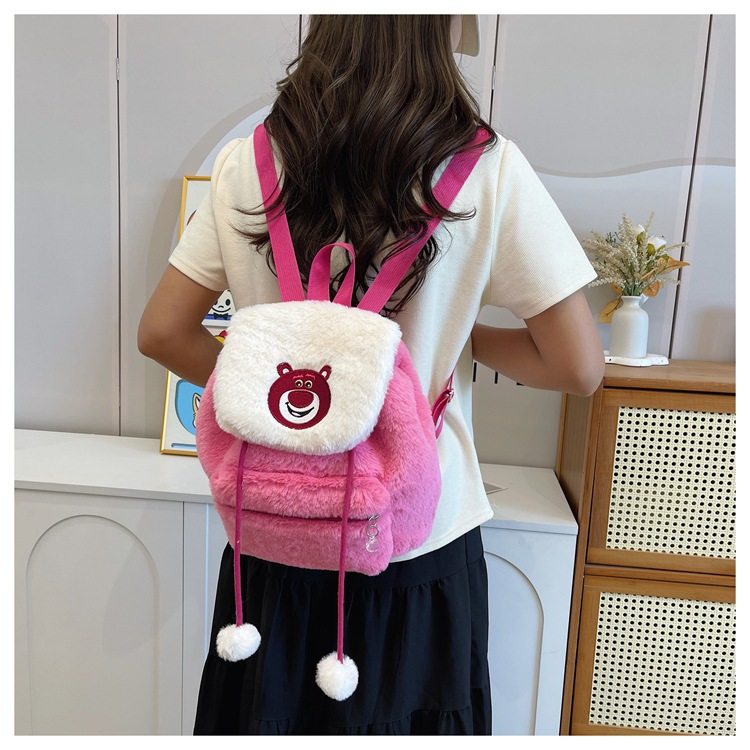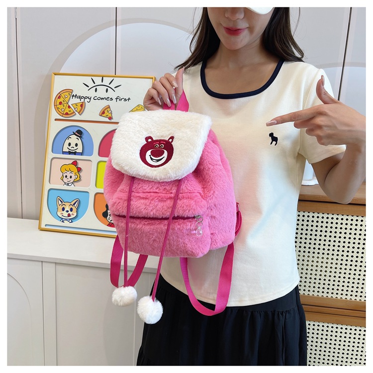 대용량 봉제 배낭 여성의 2024 새로운 귀여운 끈 배낭 만화 플립 여행 배낭스토어 가기