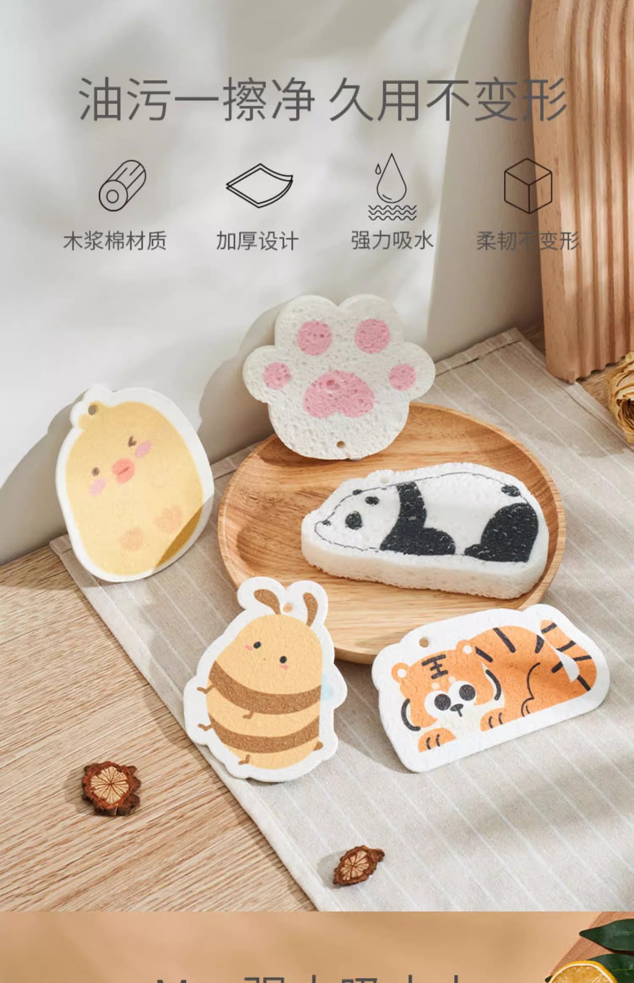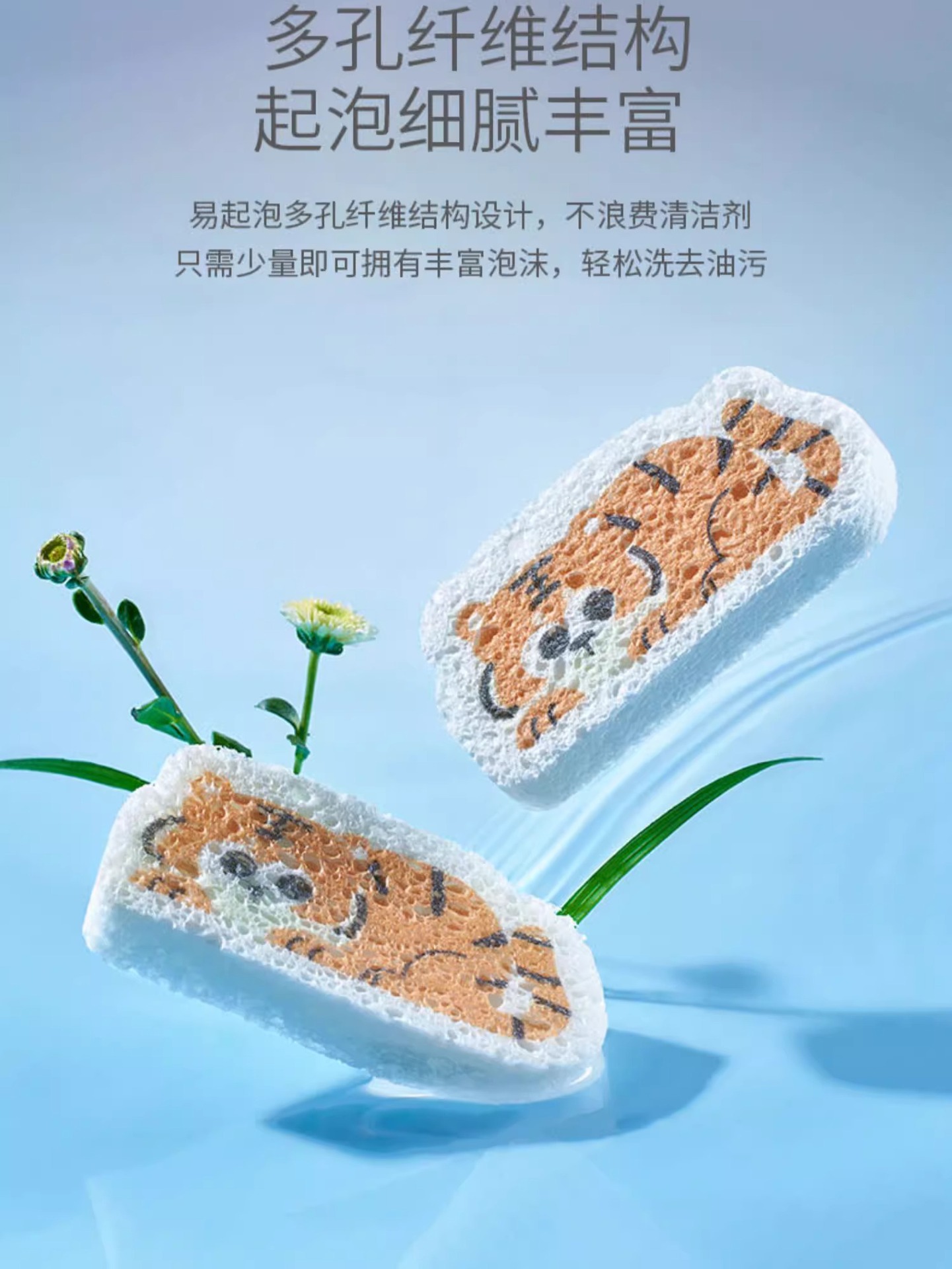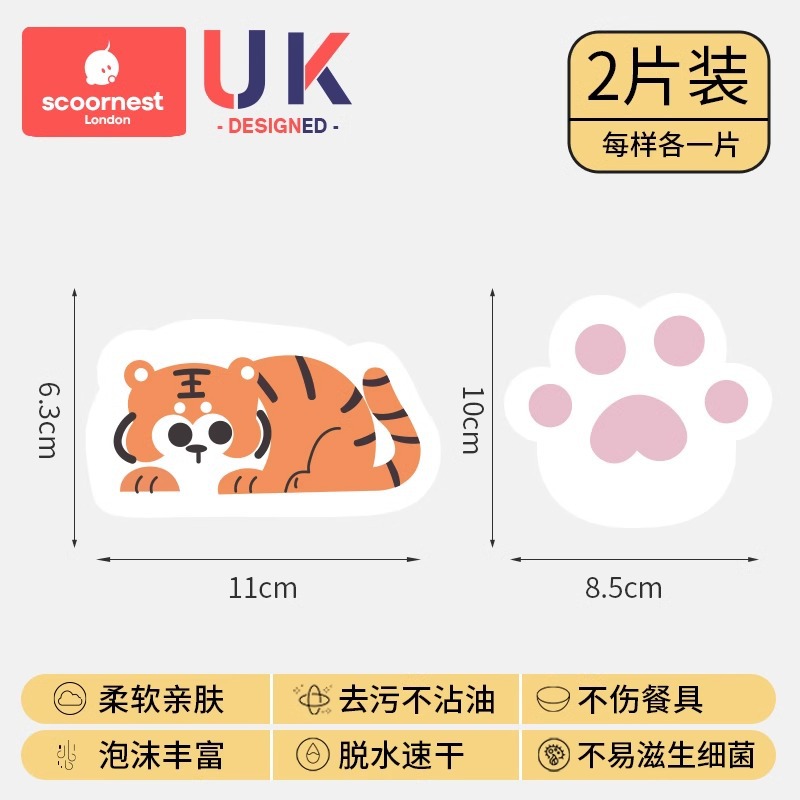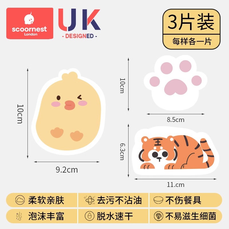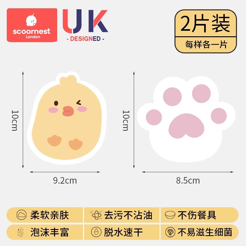 케차오 목재펄프 면 설거지 스펀지 가정용 주방 설거지 아기용 설거지 스펀지 식기세척 스펀지 귀여운 만화 캐릭터 청소용품스토어 가기