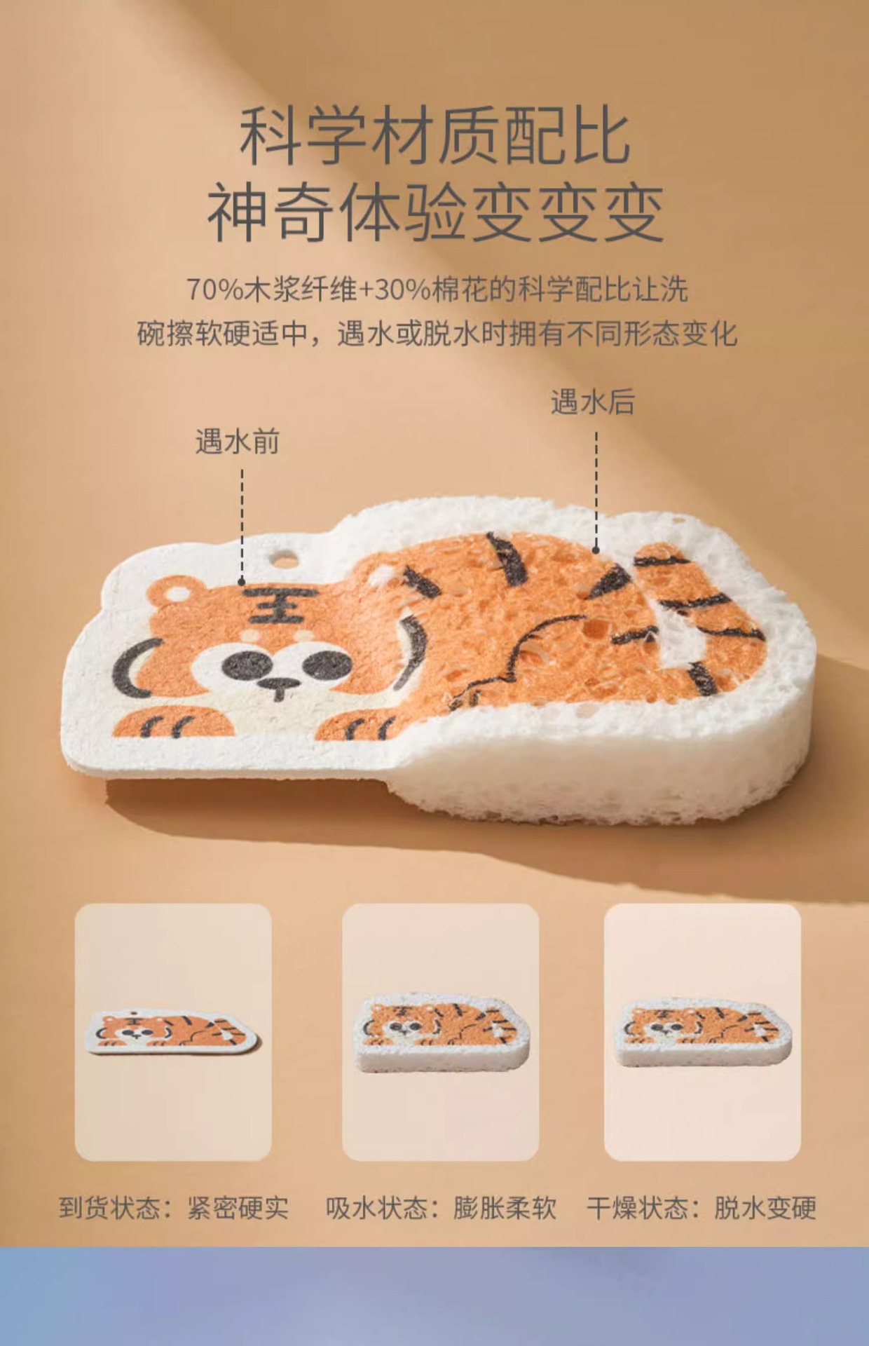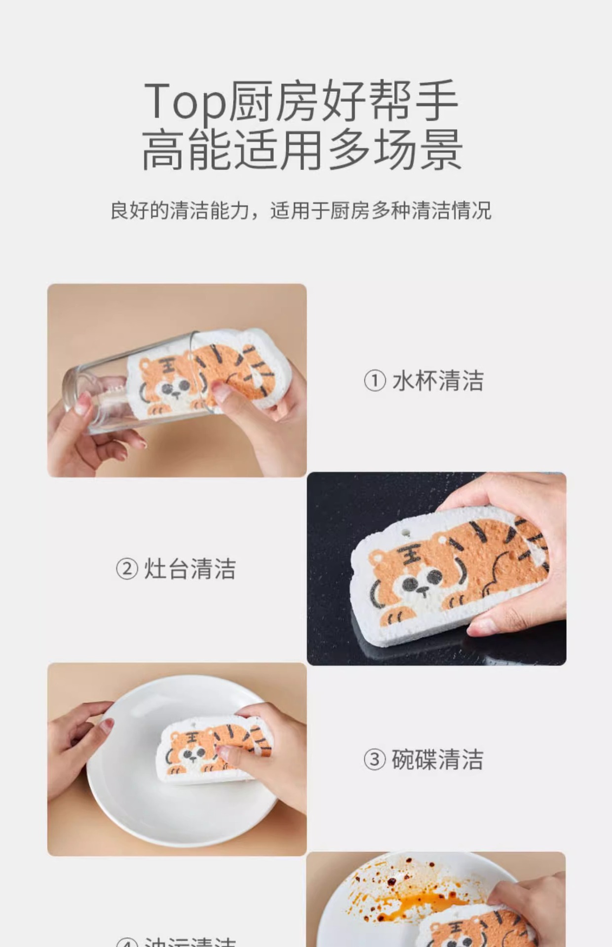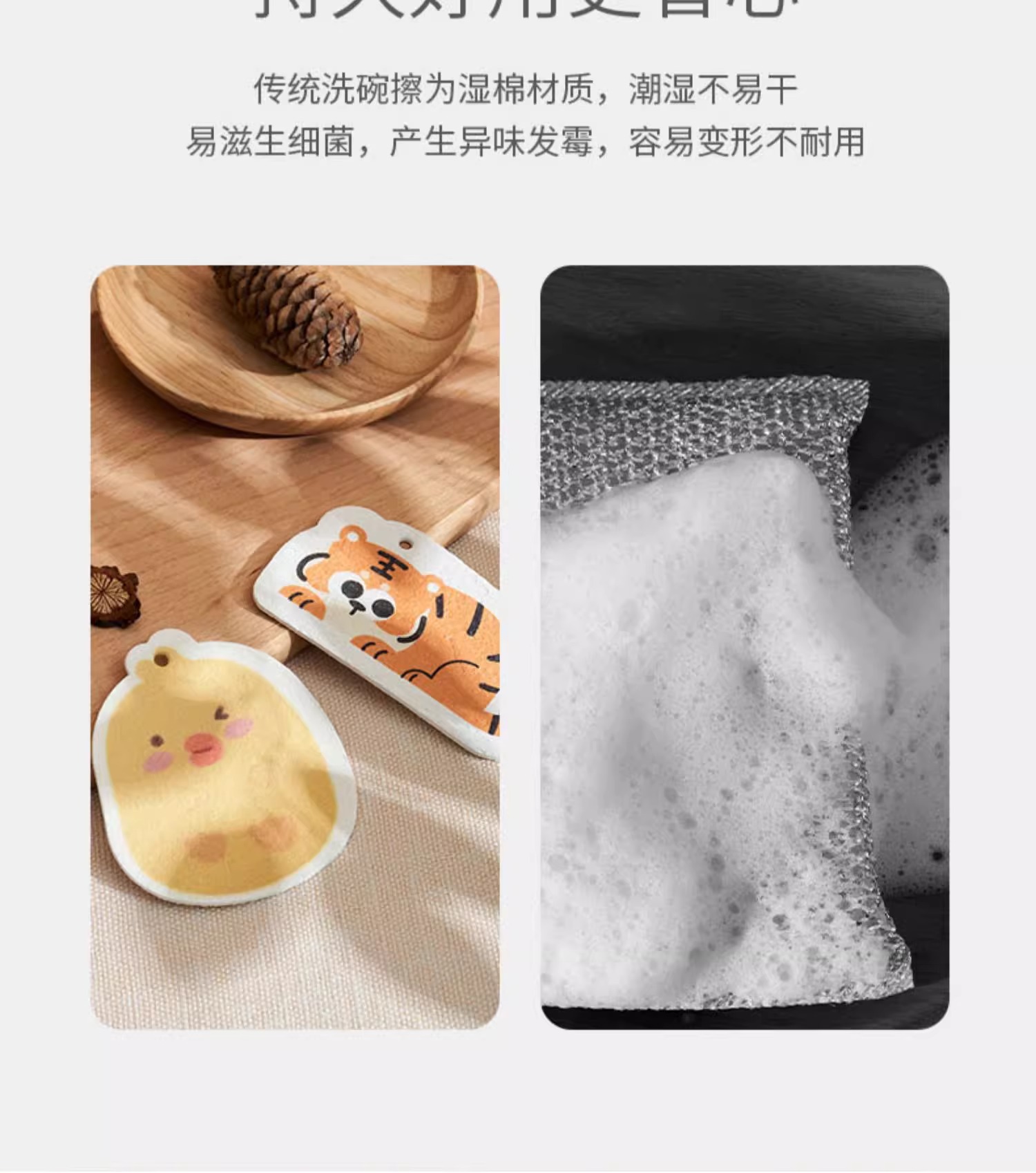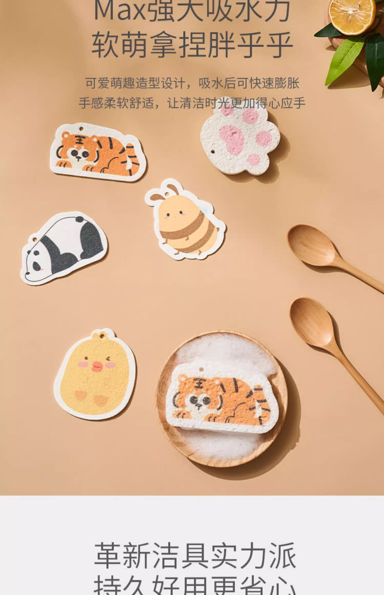 케차오 목재펄프 면 설거지 스펀지 가정용 주방 설거지 아기용 설거지 스펀지 식기세척 스펀지 귀여운 만화 캐릭터 청소용품스토어 가기