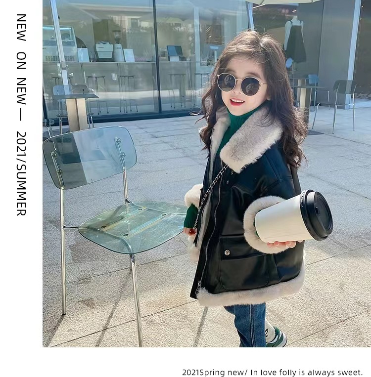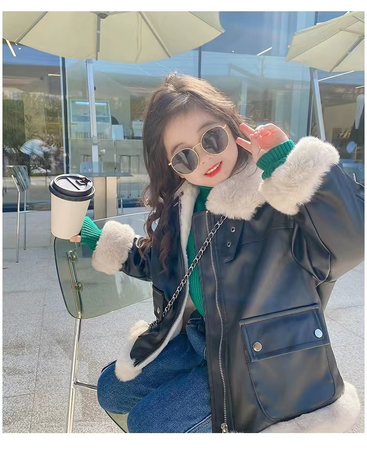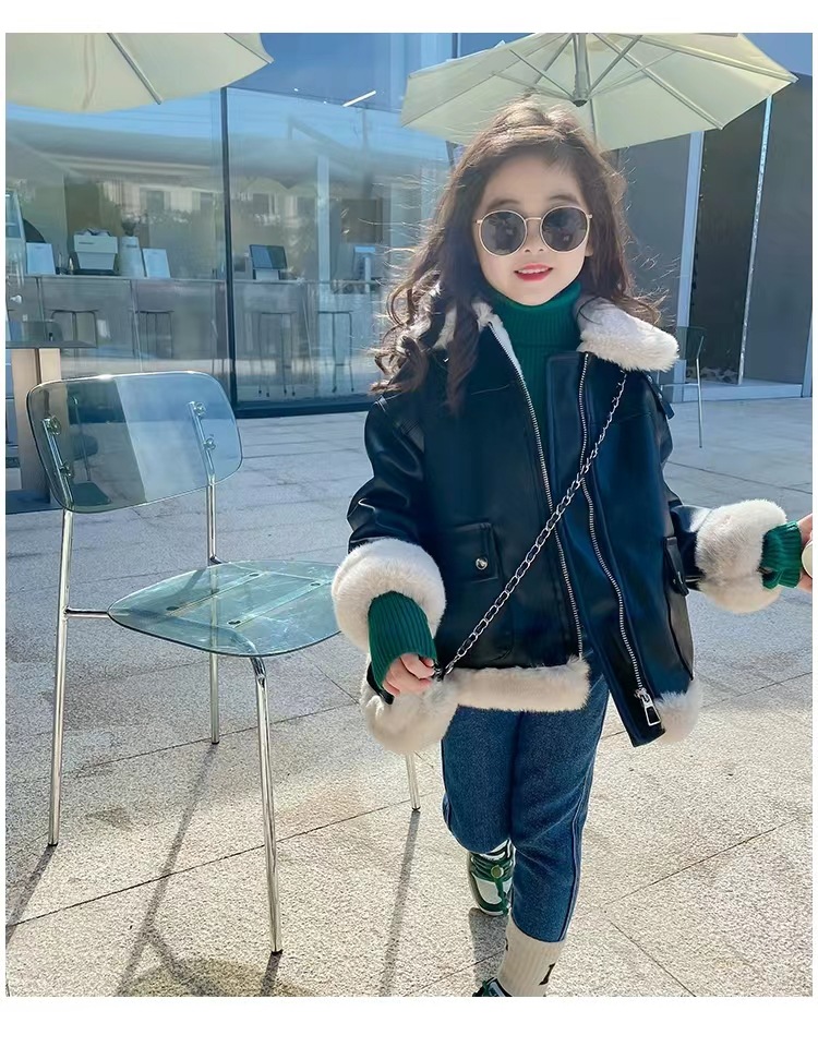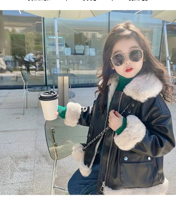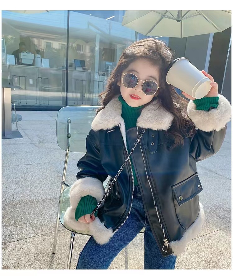 여아 가죽 자켓 가을 겨울 2025 신상품 여아용 플리스 안감 두꺼운 가죽 자켓 아동복 트렌디 스타일