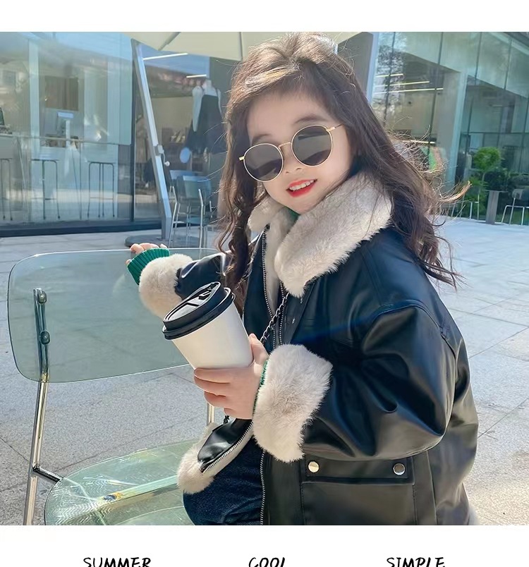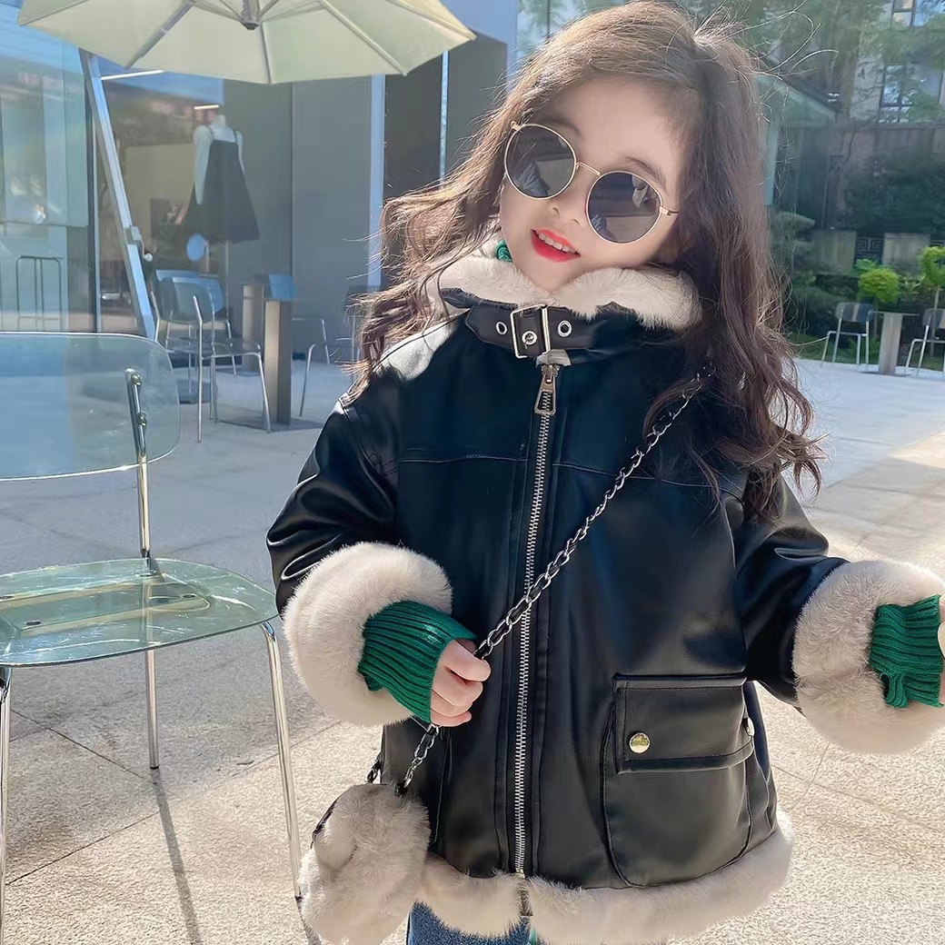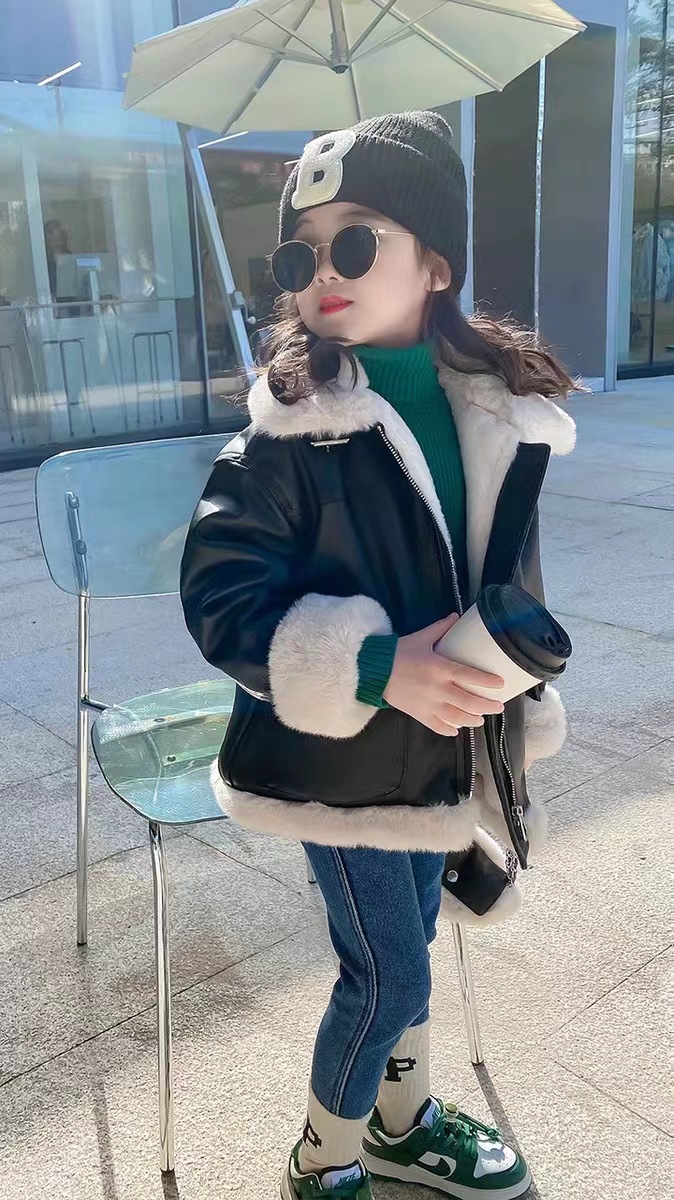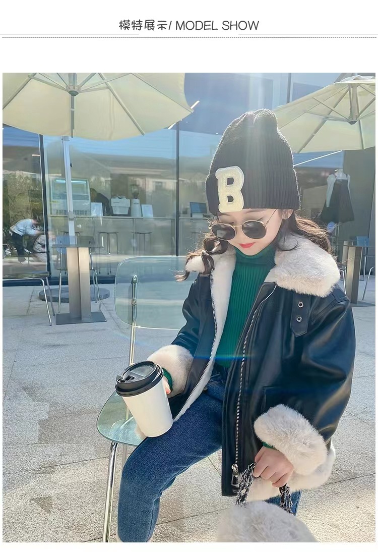 여아 가죽 자켓 가을 겨울 2025 신상품 여아용 플리스 안감 두꺼운 가죽 자켓 아동복 트렌디 스타일