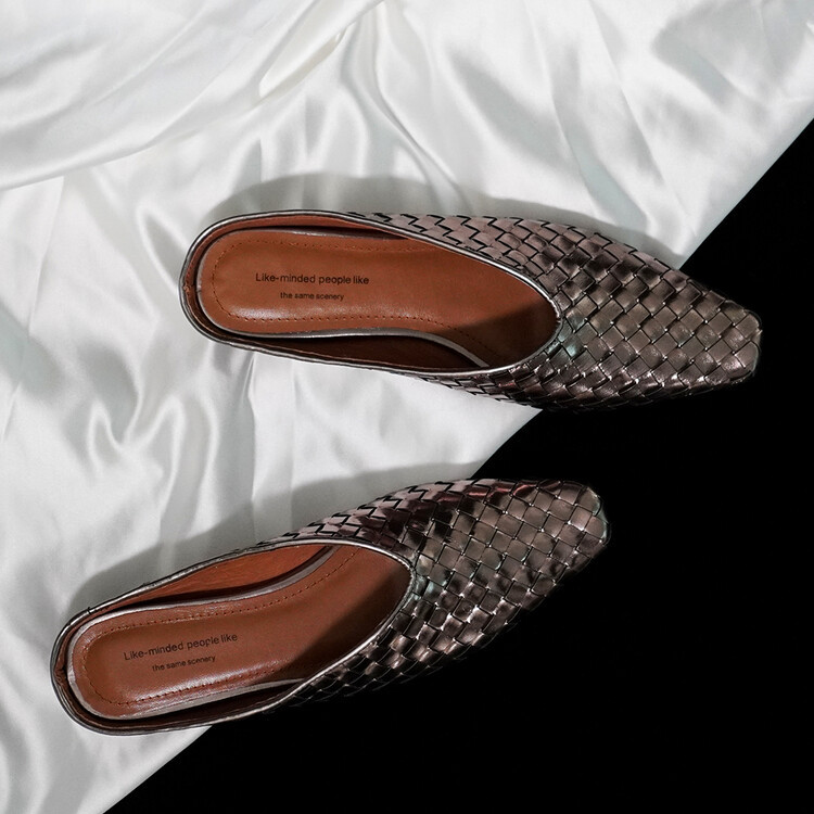 짠 바오터우 뮬러 슬리퍼 여성 바오터우 슬리퍼 여름 새로운 카우보이 광장 낮은 발 외부 착용 슬리퍼 여성