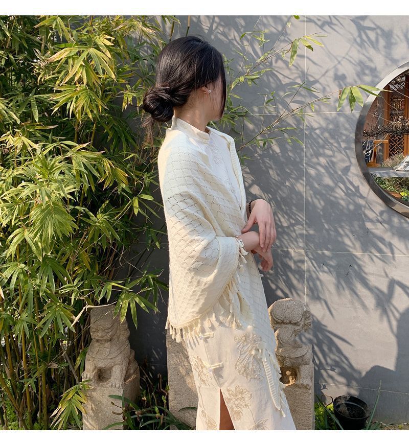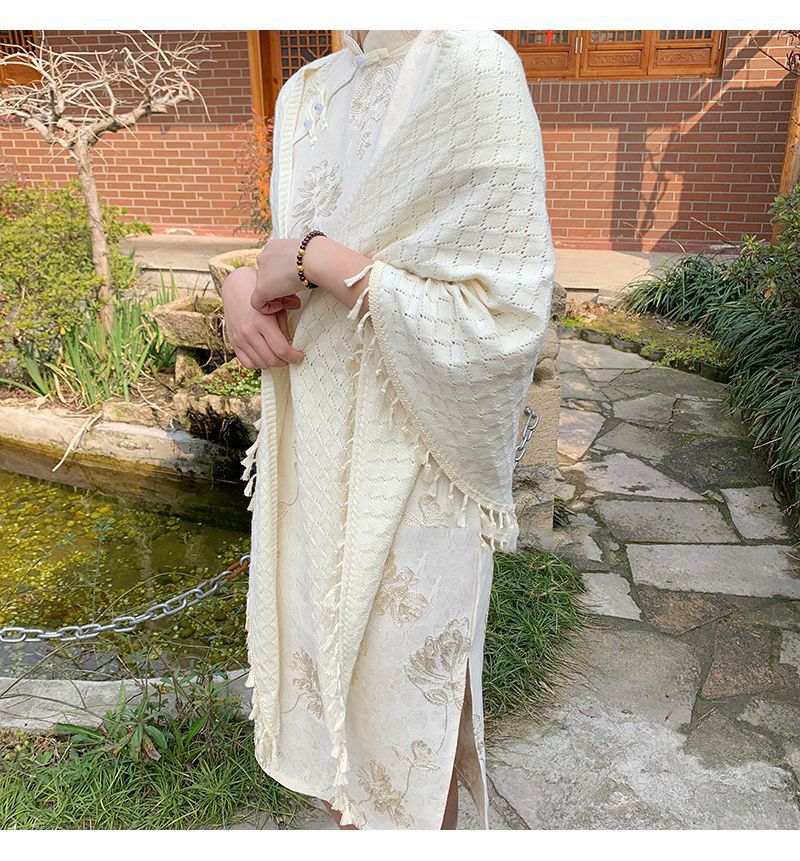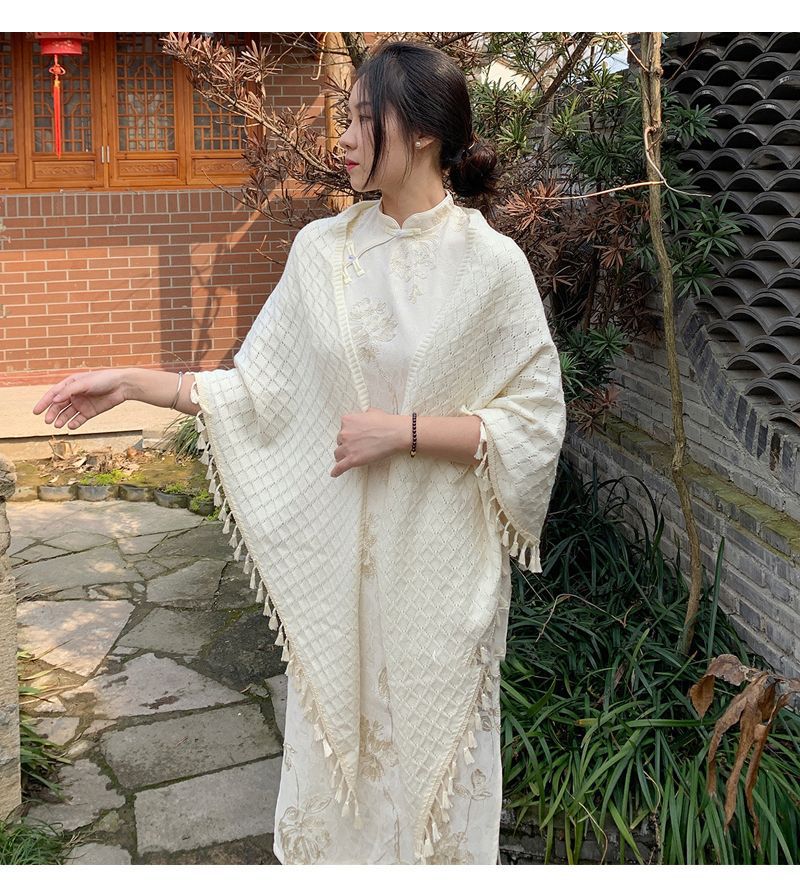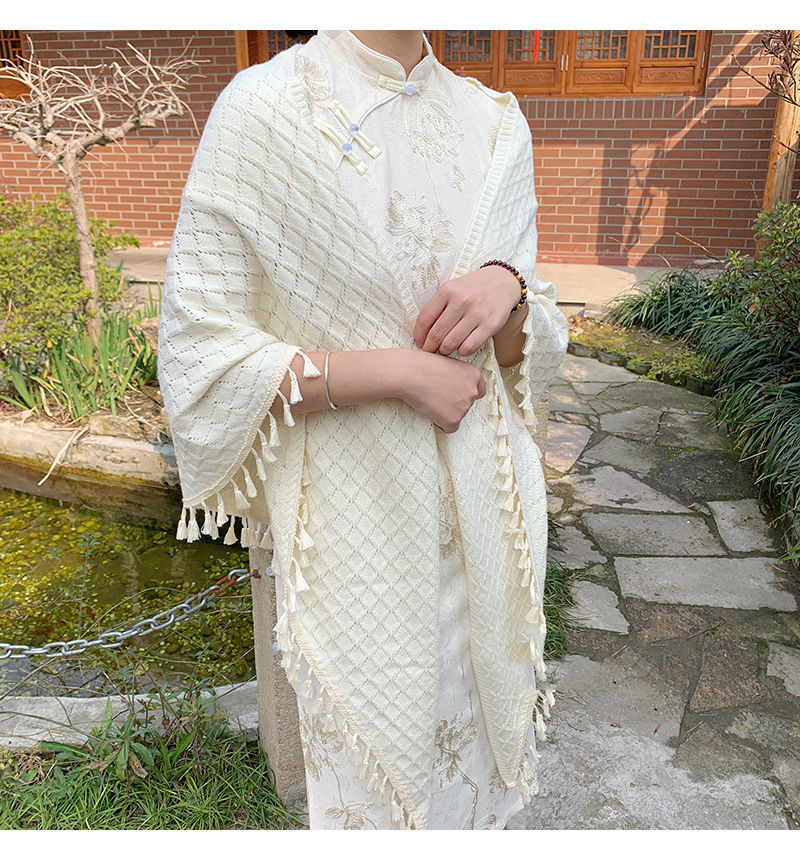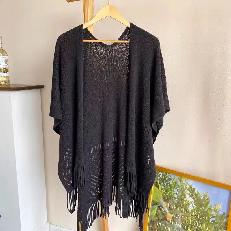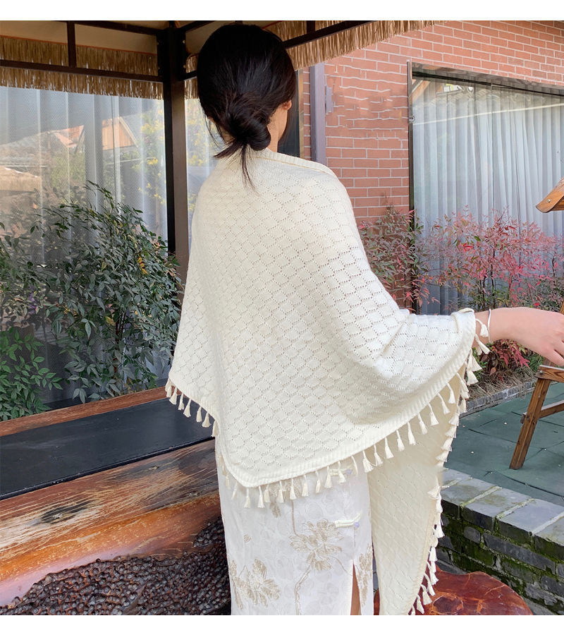 새로운 단색 장식 니트 할로우 민족 스타일 목도리 여름 여성의 케이프 모피 볼 술 디자인 망토